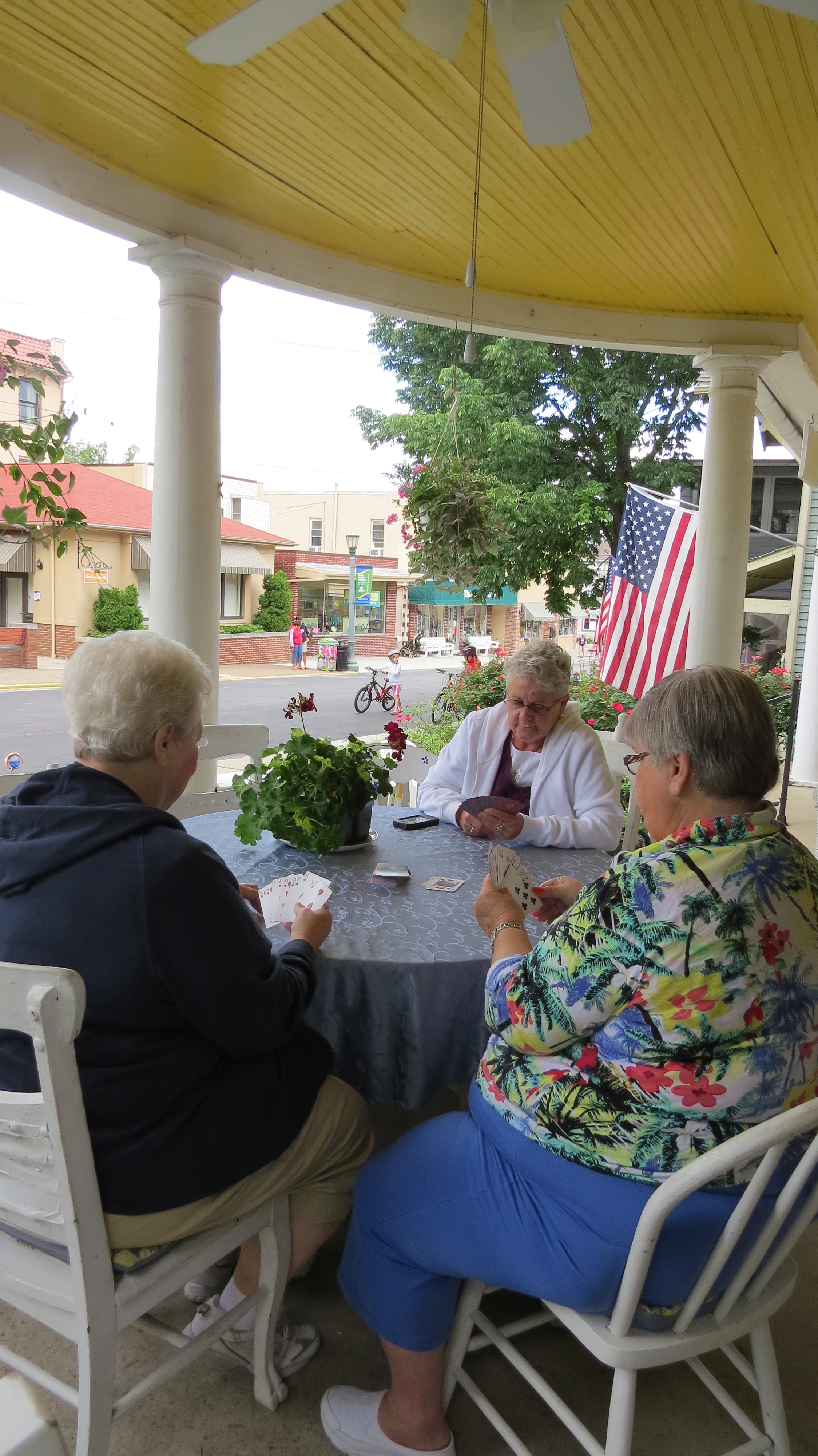 The front porches of Lakeside’s cottages and bed and breakfasts host a variety of fun activities day and night.