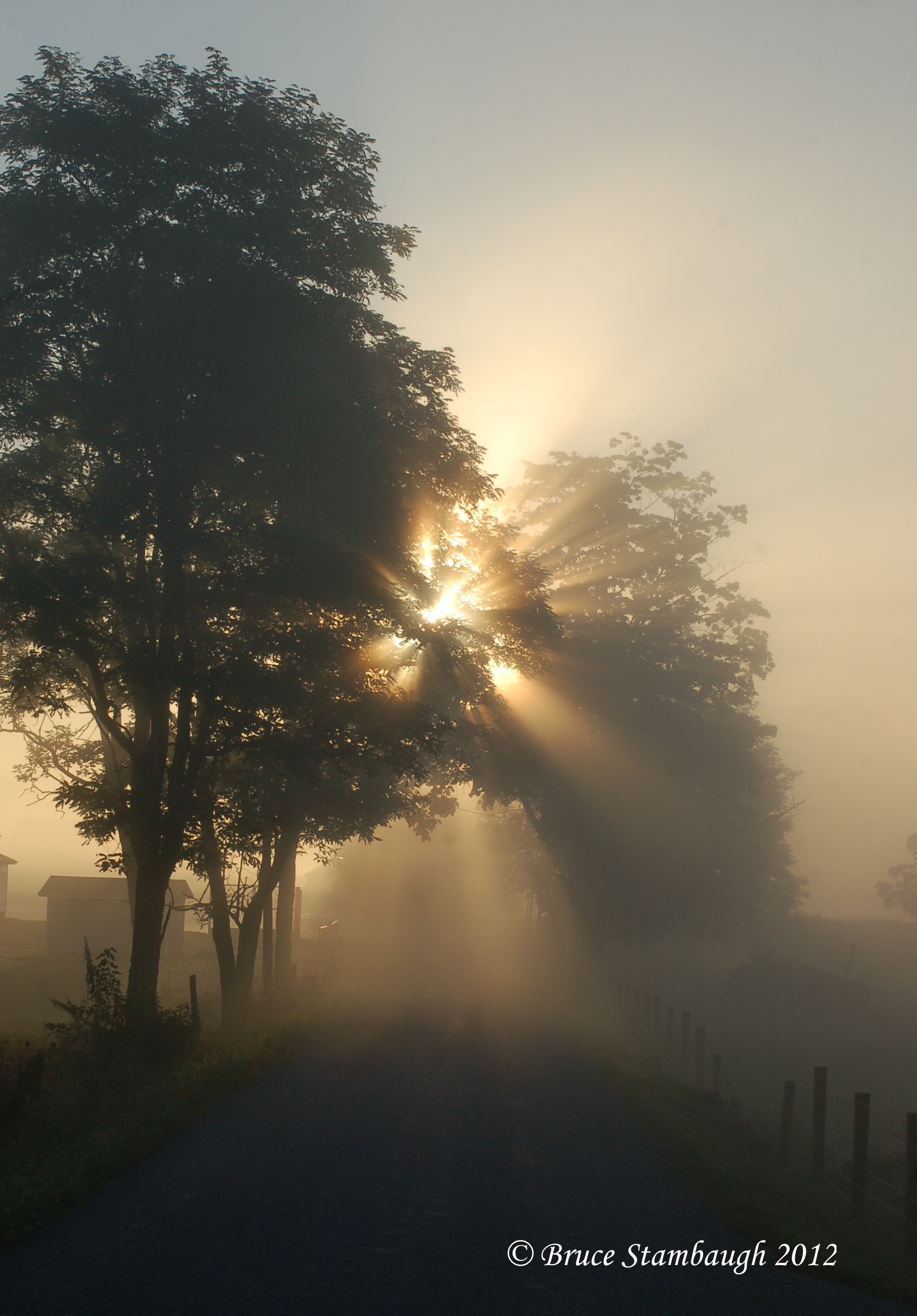 By months end, early morning coolness brought silent, silken fog that glowed bronze with the rising sun. If eyes were sharp, silver droplets dotted the dewy threads of spider webs artistically strung from one barbed wire strand to another.