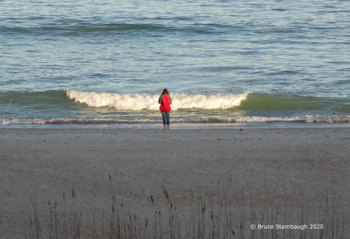 woman in red coat, Amelia Island FL
