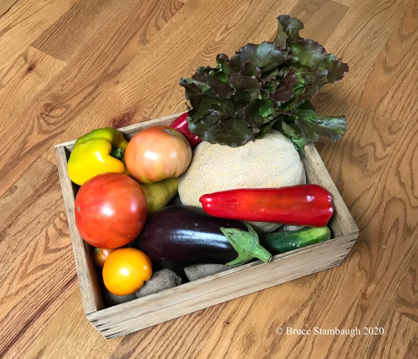 The half-box of organic fruits and vegetables we get each Monday from our Community Supporting Agriculture program assures that we maintain a healthy, flavorful diet. We also frequent several local produce businesses, mostly operated by the Shenandoah Valley’s Old Order Mennonites.