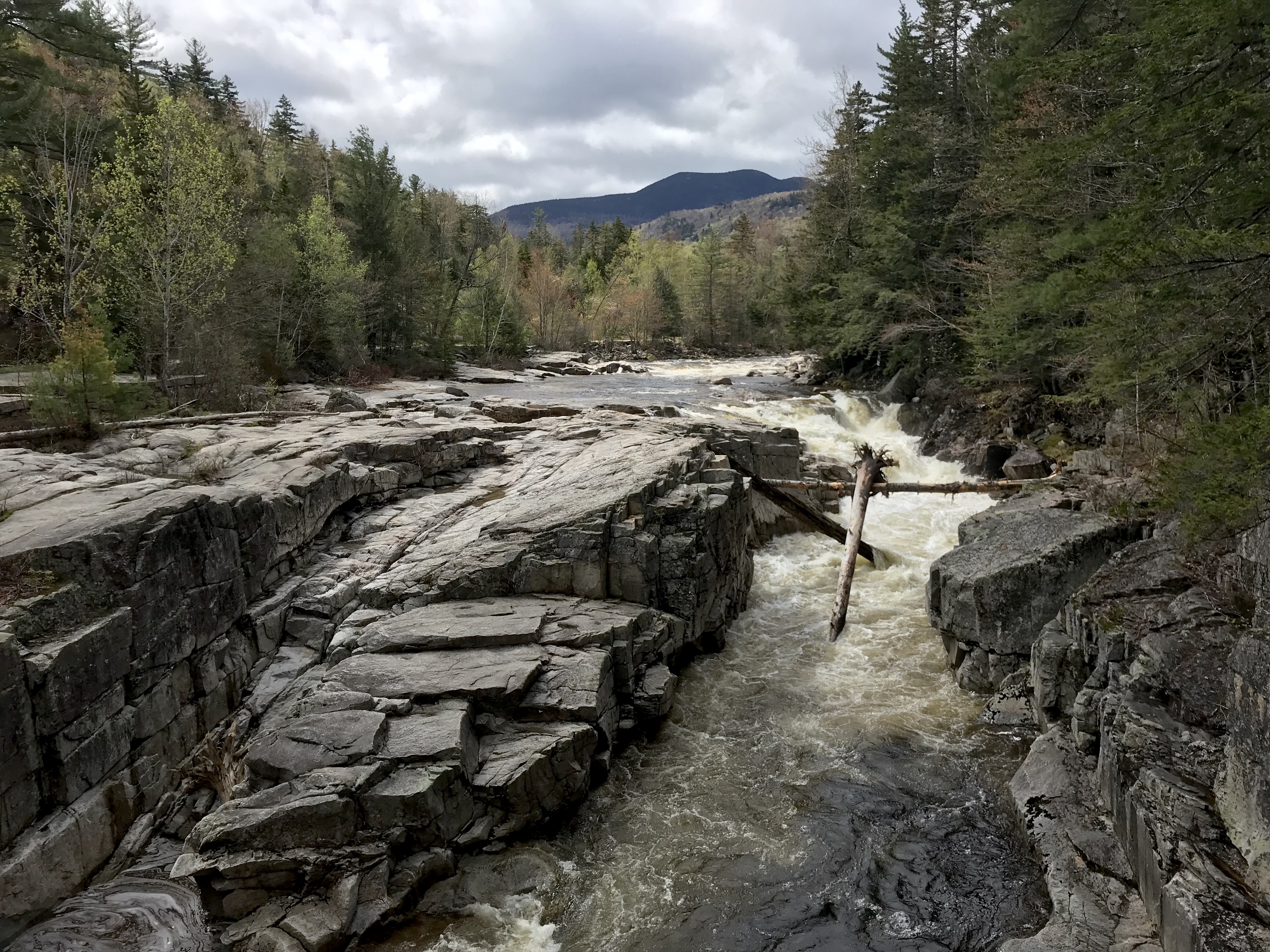 Recent spring rains and melting snow from the surrounding White Mountains had this river running full. Roaring tributaries with impressive waterfalls added to the river’s rage.
