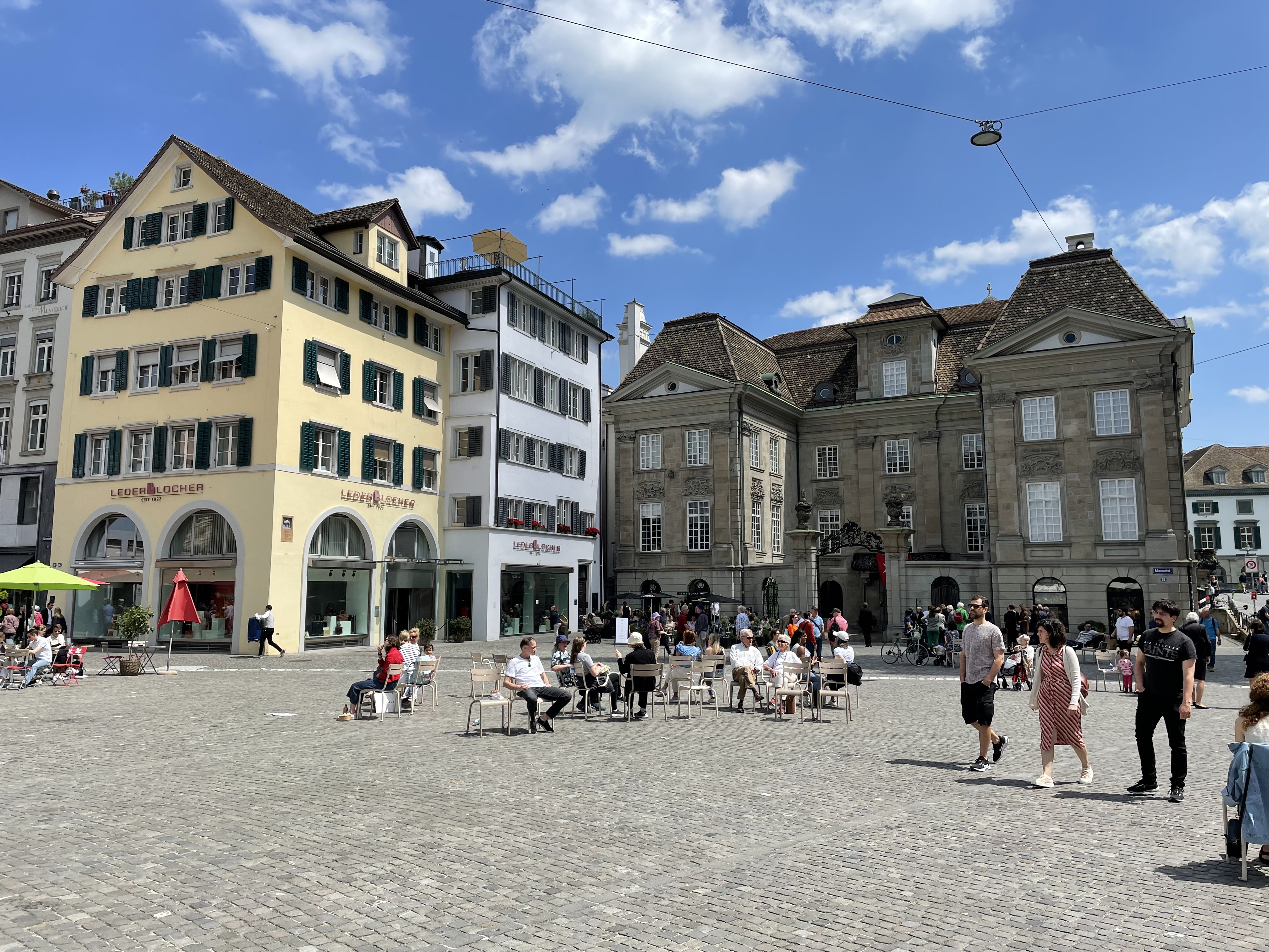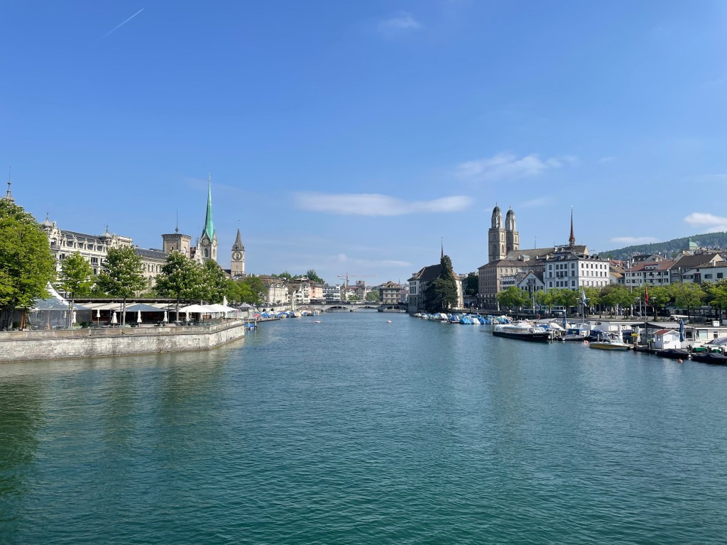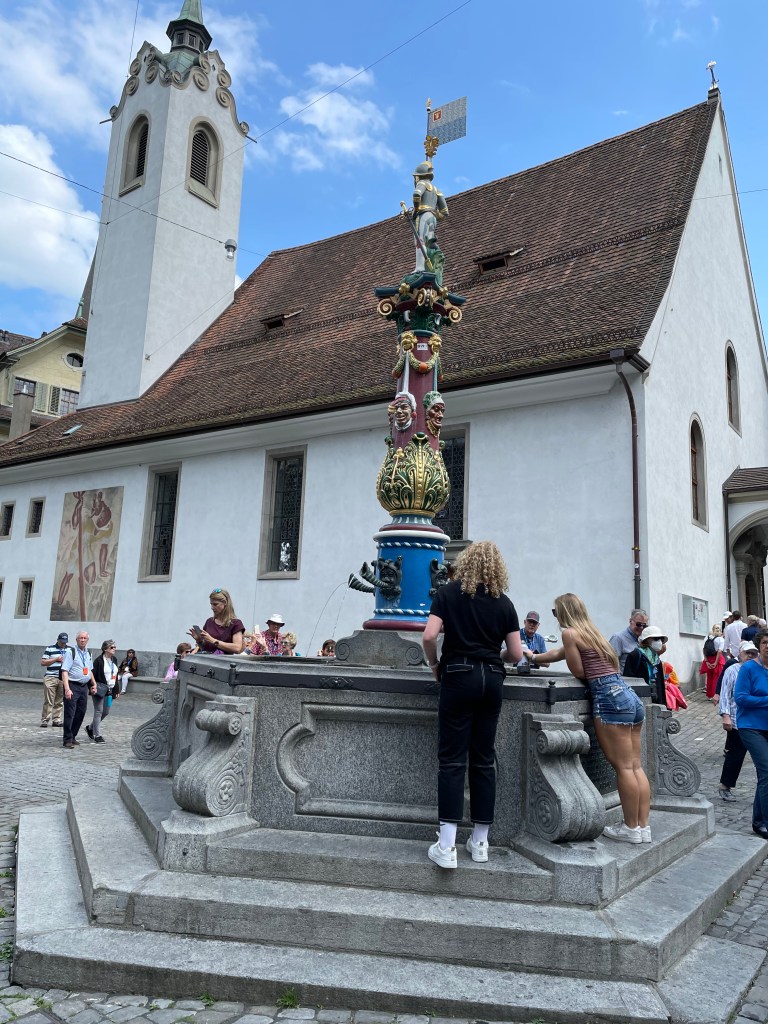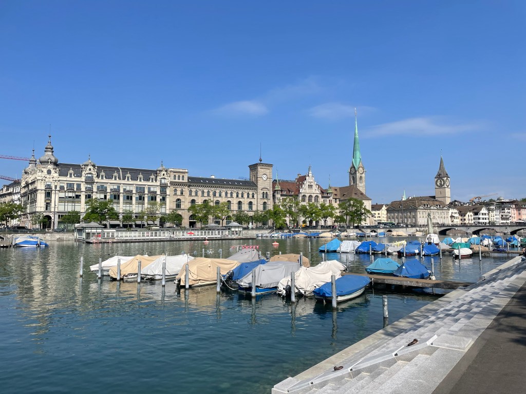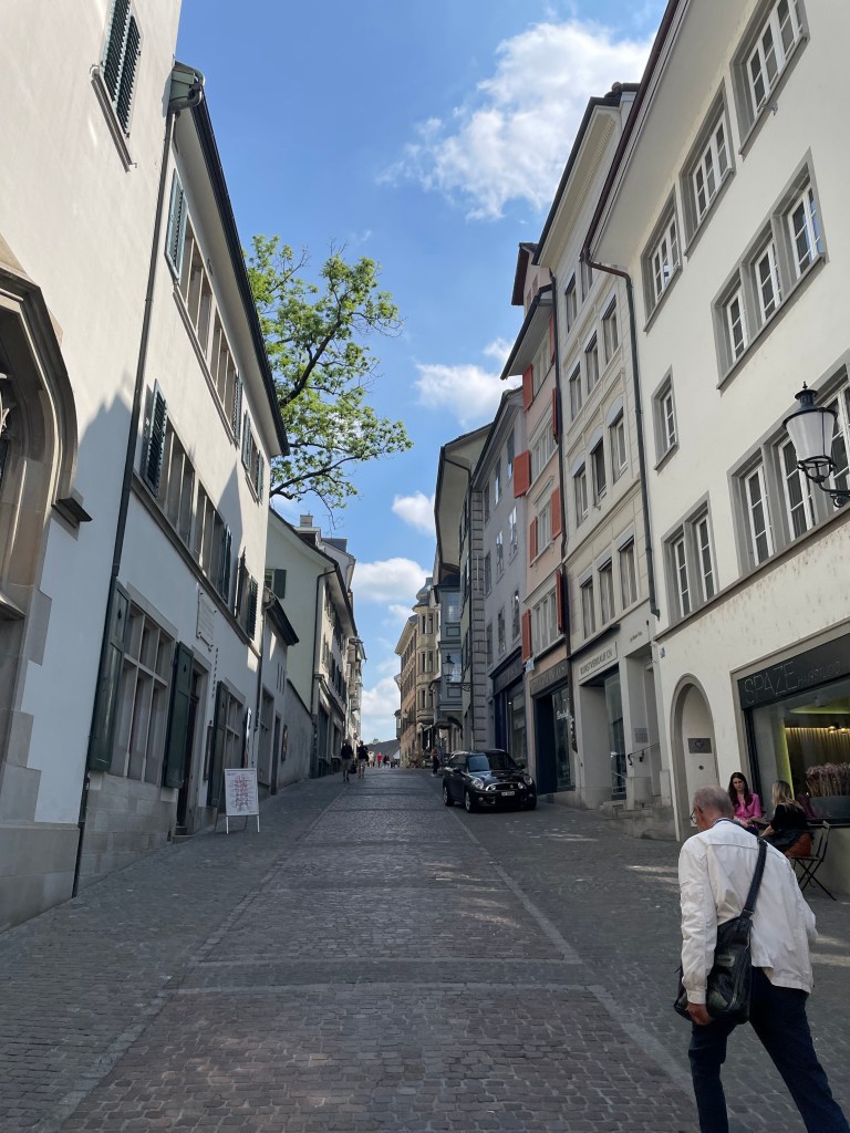 It was a short bus ride from our suburban hotel to the heart of Zurich, Switzerland, a global financial center. Indeed, we saw no skyscrapers, only well-maintained office buildings a few stories high. The many church steeples reached higher than the buildings.