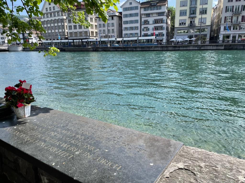 Consequently, the early Anabaptists were hunted down by Catholics and Protestants alike. Some were drowned, while others were burned at the stake. Felix Manz was the first Anabaptist martyr, and we visited the spot where he was drowned in the Limmat River that runs through the heart of Zurich.
