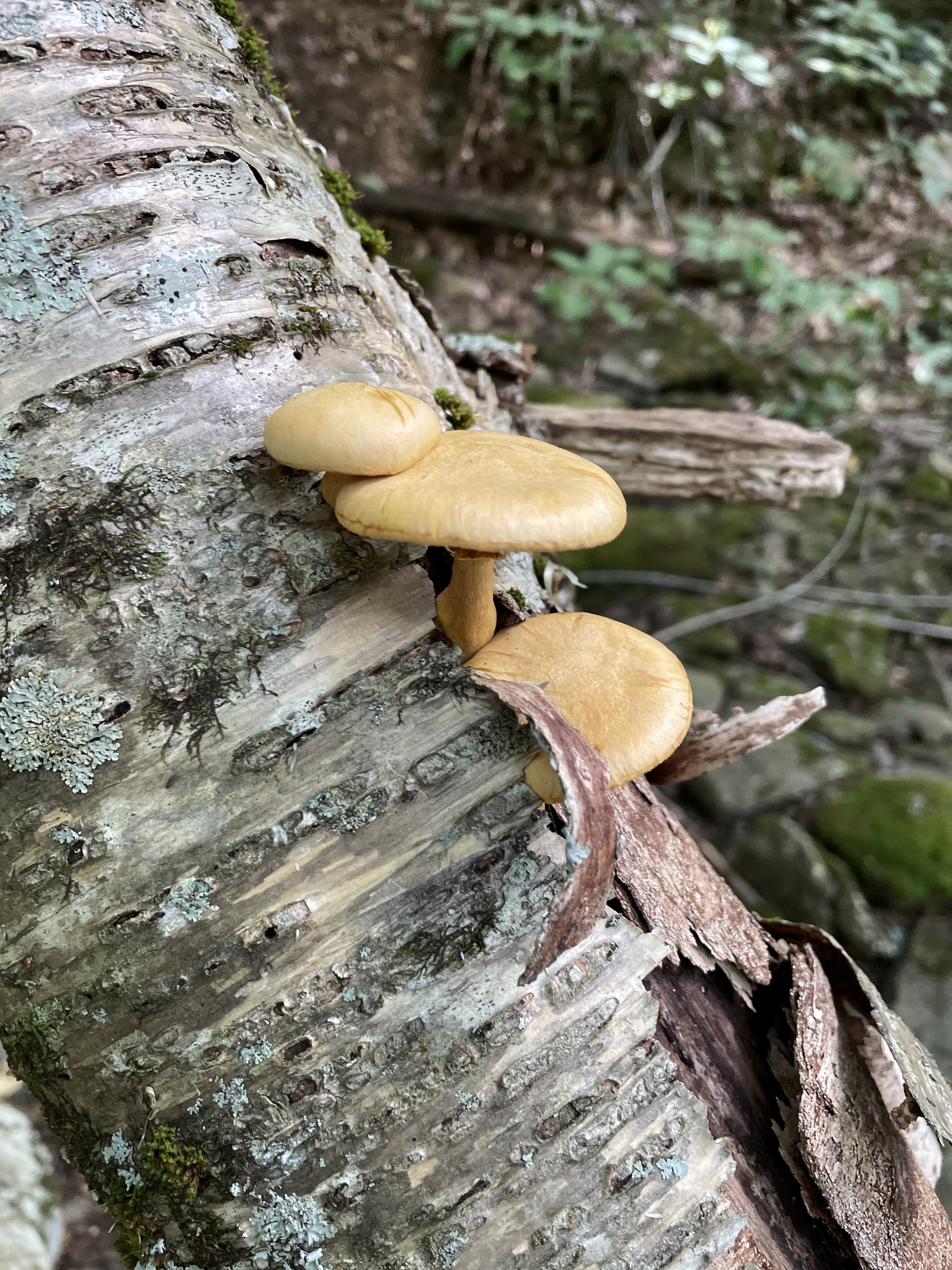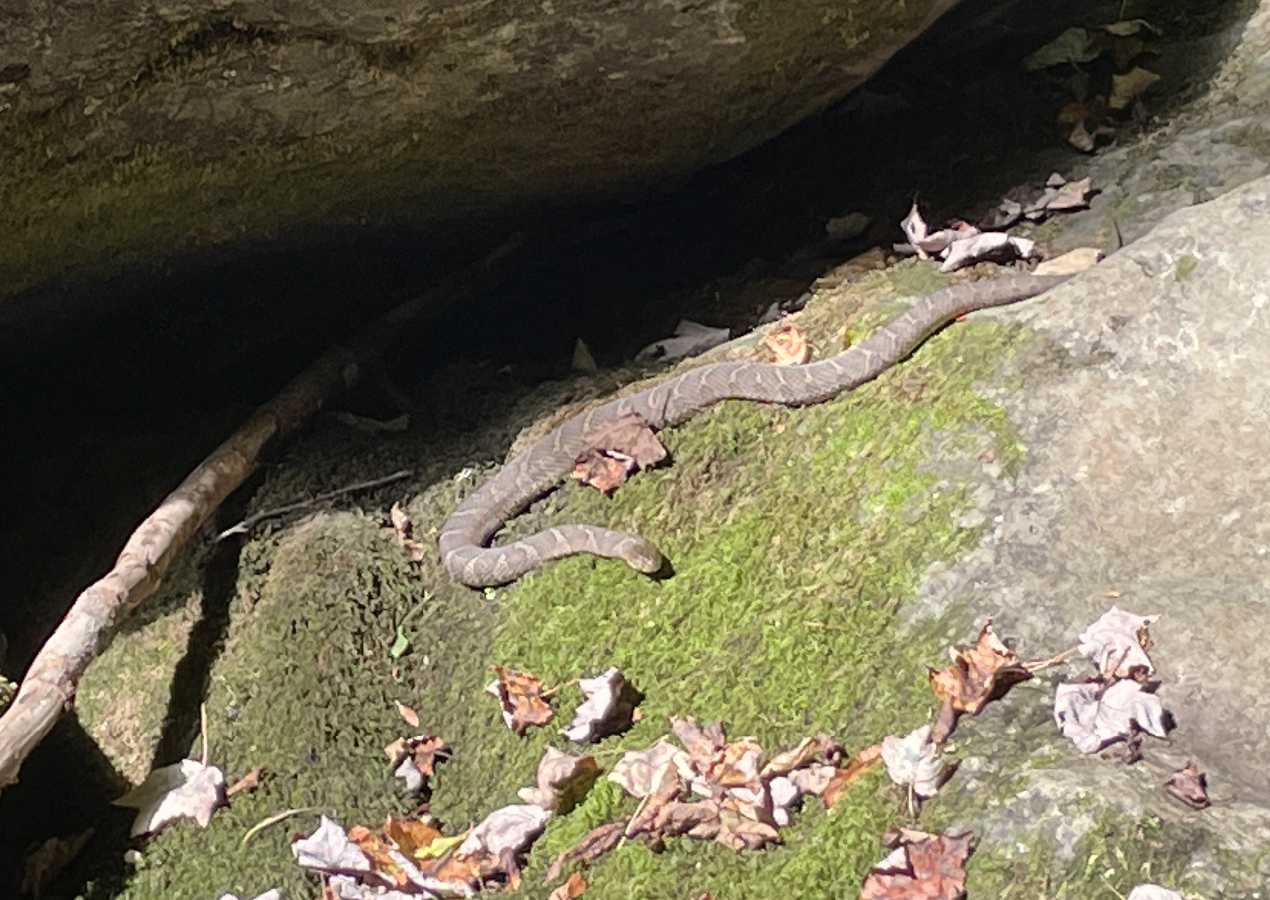 We took our time, enjoying nature’s stillness, the verdant forest floor carpeted with ferns, grasses, and wildflowers. We respectfully observed the colorful fungus and the four-foot northern water snake soaking in the morning sun on a large moss-covered rock in the middle of the trickling stream.