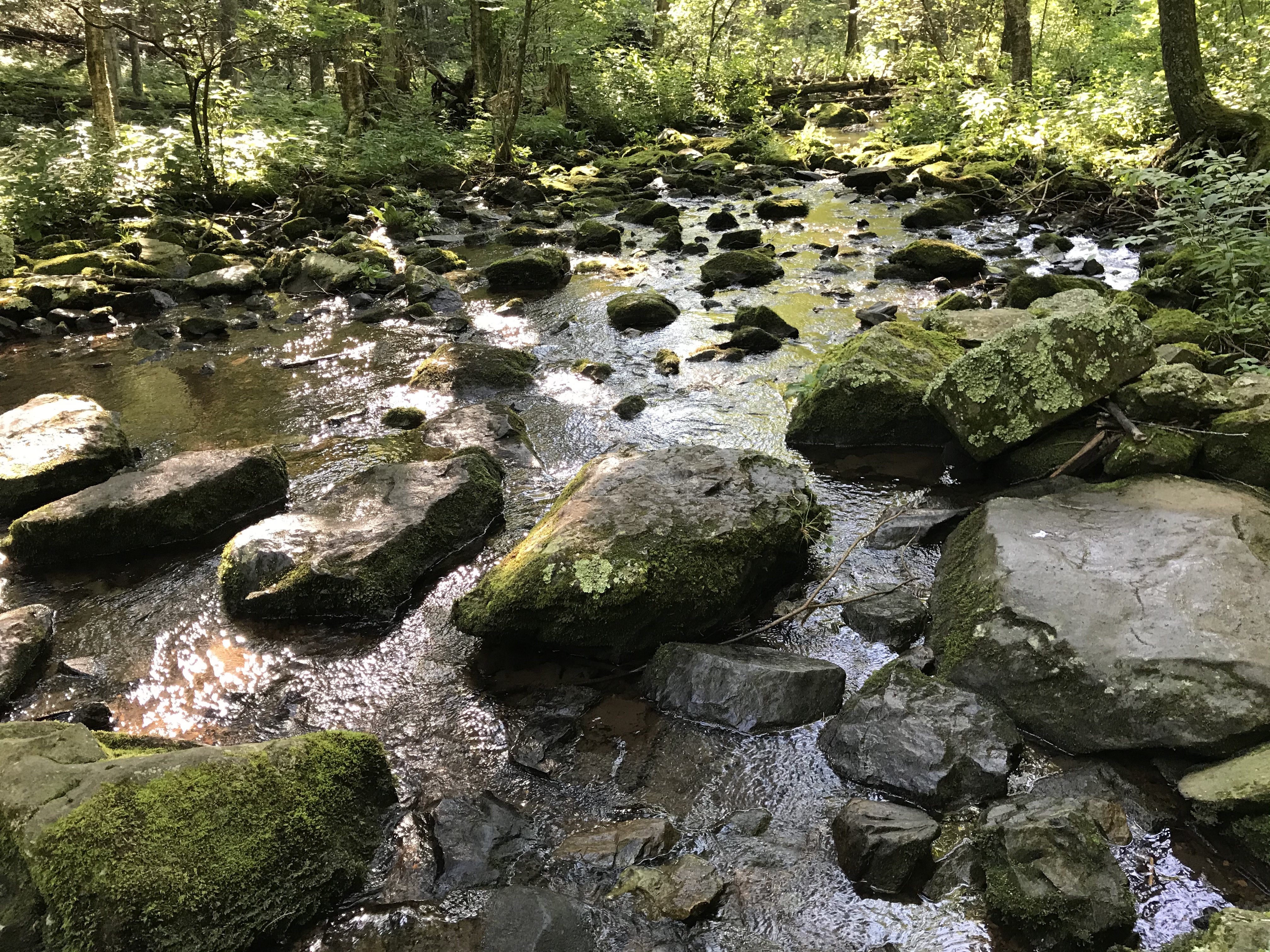 The Mill Prong Trail has two stream crossings. Trail-keepers conveniently placed large rocks for hikers to successfully cross both without getting wet. That is, as long as you don’t slip and fall. I was the only one who did.