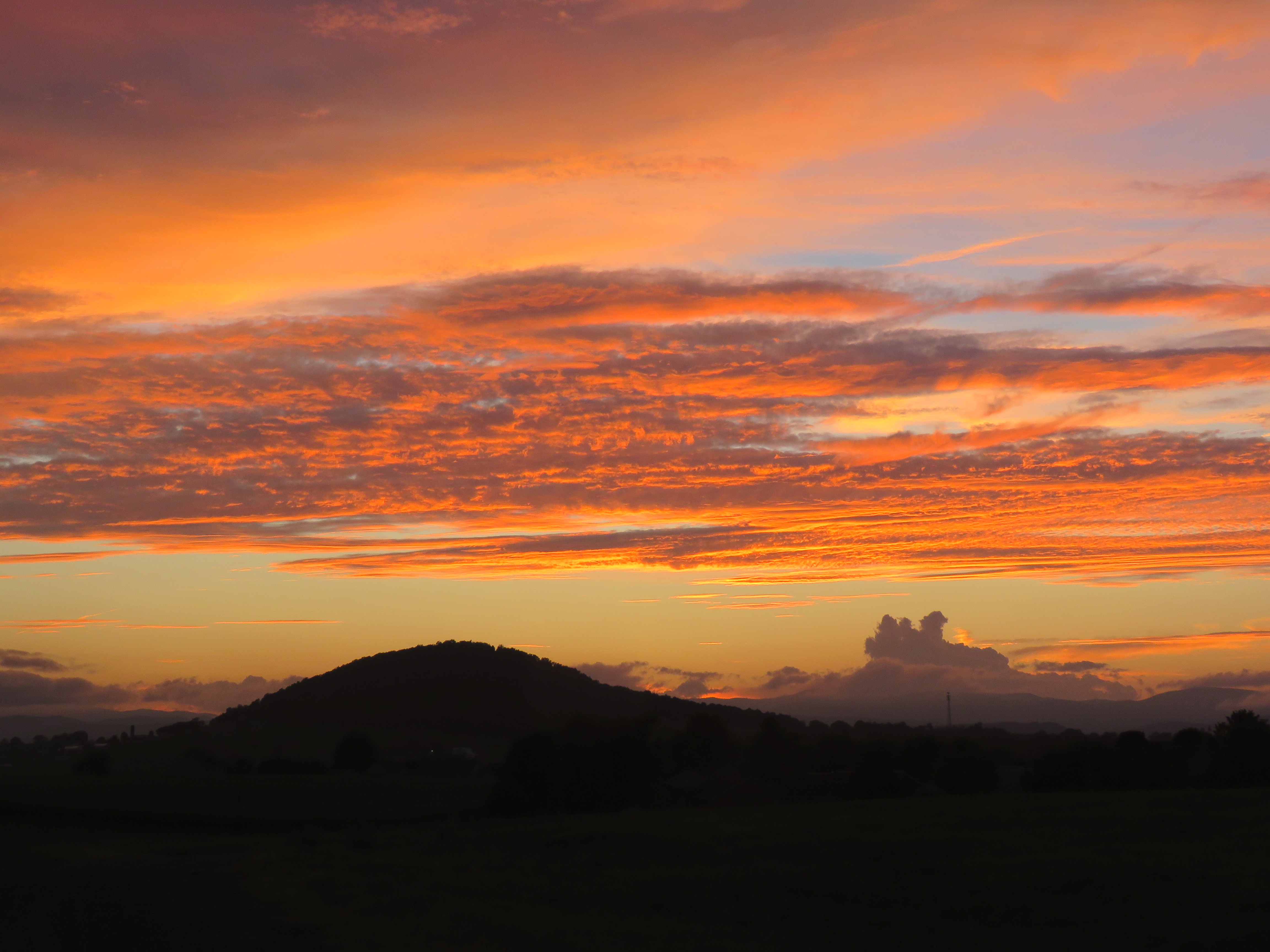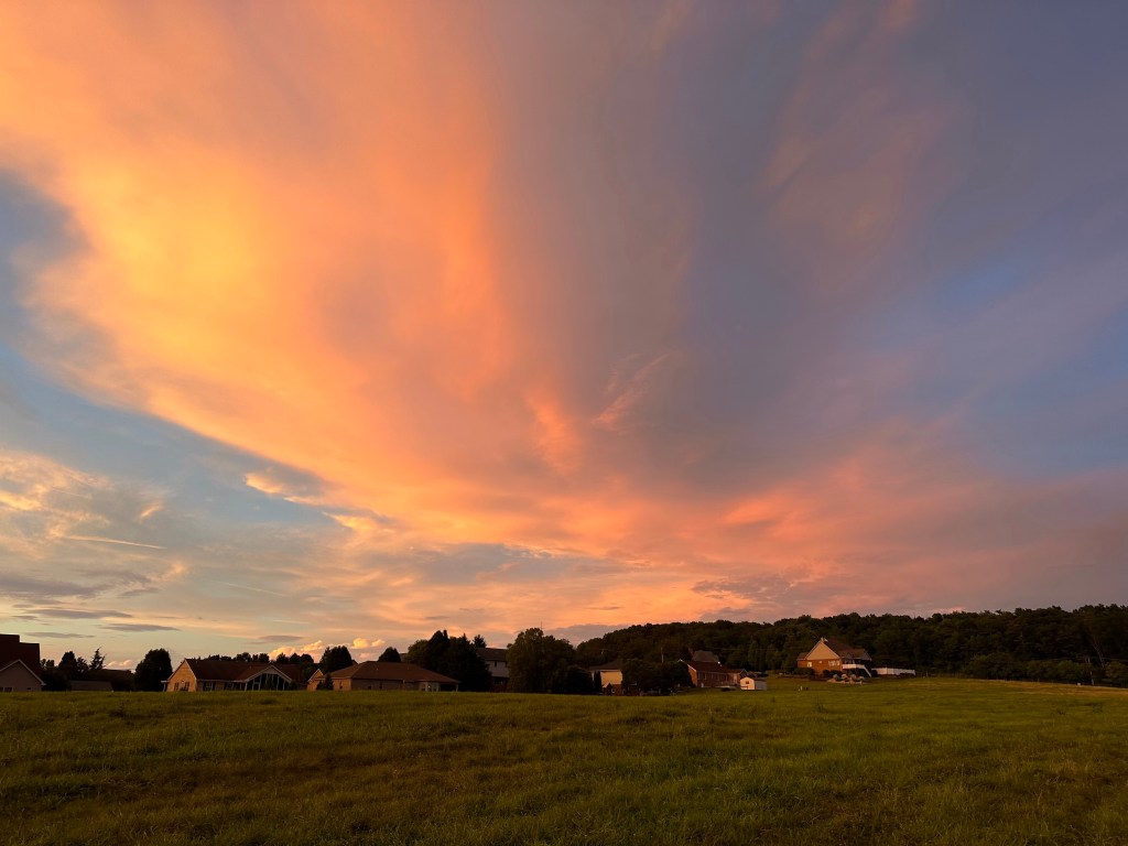 The glow to the west was filled with a variety of warm colors. A large cloud curved and swirled overhead, reflecting the setting sun in many hues north and east. To the south, the sky was more pink than orange. Added altogether, I felt privileged to inhale the enveloping wonder.