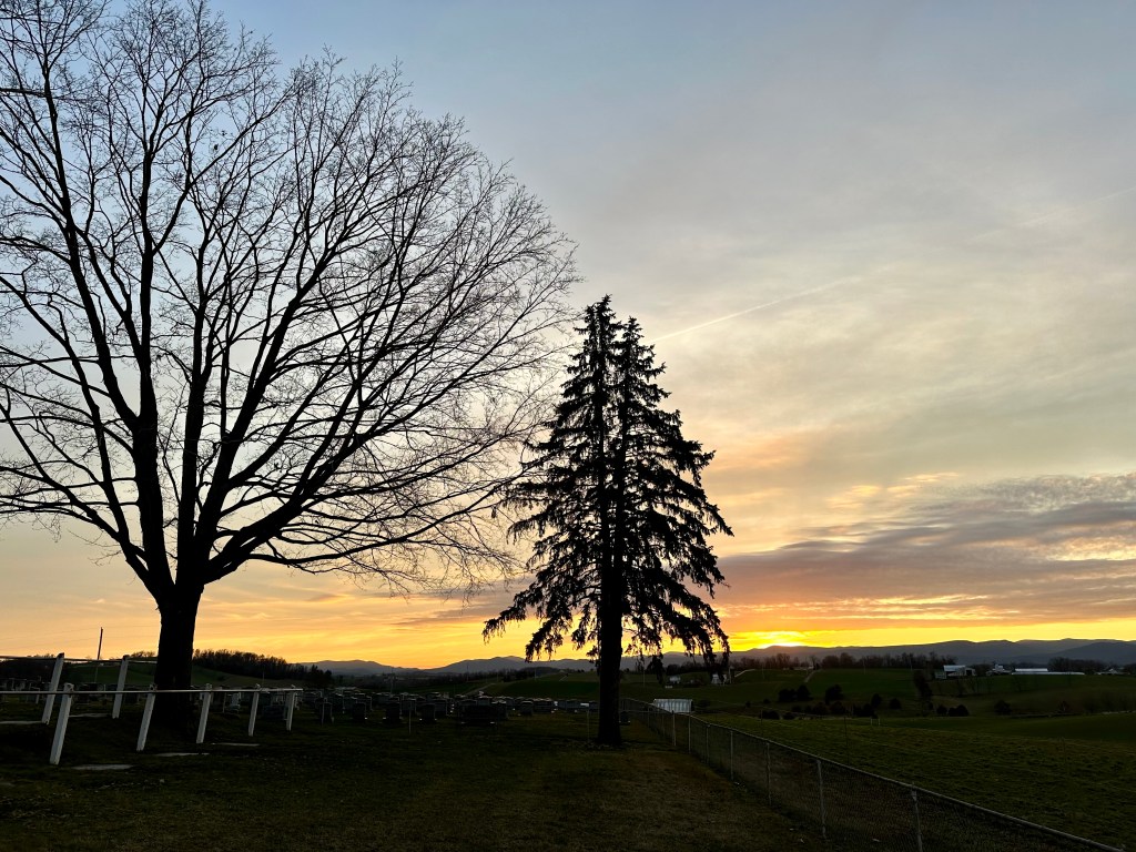 The western glow perfectly silhouetted the lines of trees along the river banks. I stopped my vehicle by the cemetery of a historic country church. As I exited my car, my eyes were drawn southeast. I was stunned. The beautiful blues and pinks of a prized sunset flooded the eastern sky. I snapped away from different angles as quickly as possible, knowing the colorful array before me wouldn’t last long.