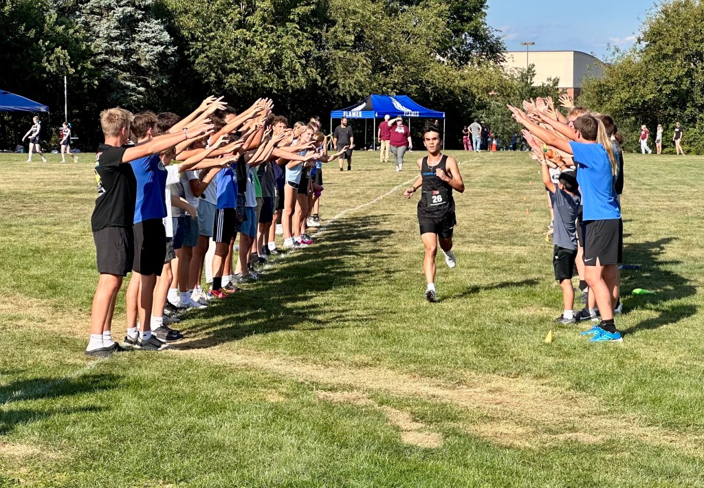 That was true for all kinds of outdoor sports. This photo shows the proud moment of the young man I mentor, far outpacing all the other high school runners in a cross-country meet. I wasn’t the only one who was pleased. Daniel’s classmates created a human gauntlet to welcome him as he approached the finish line.