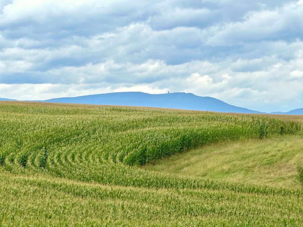 From the area’s fertile soil, curving rows of field corn and rolling contours led the eye to the Allegheny Mountains to the northwest and the cruising cumulus clouds above. Come harvest, it was a bumper crop of corn.