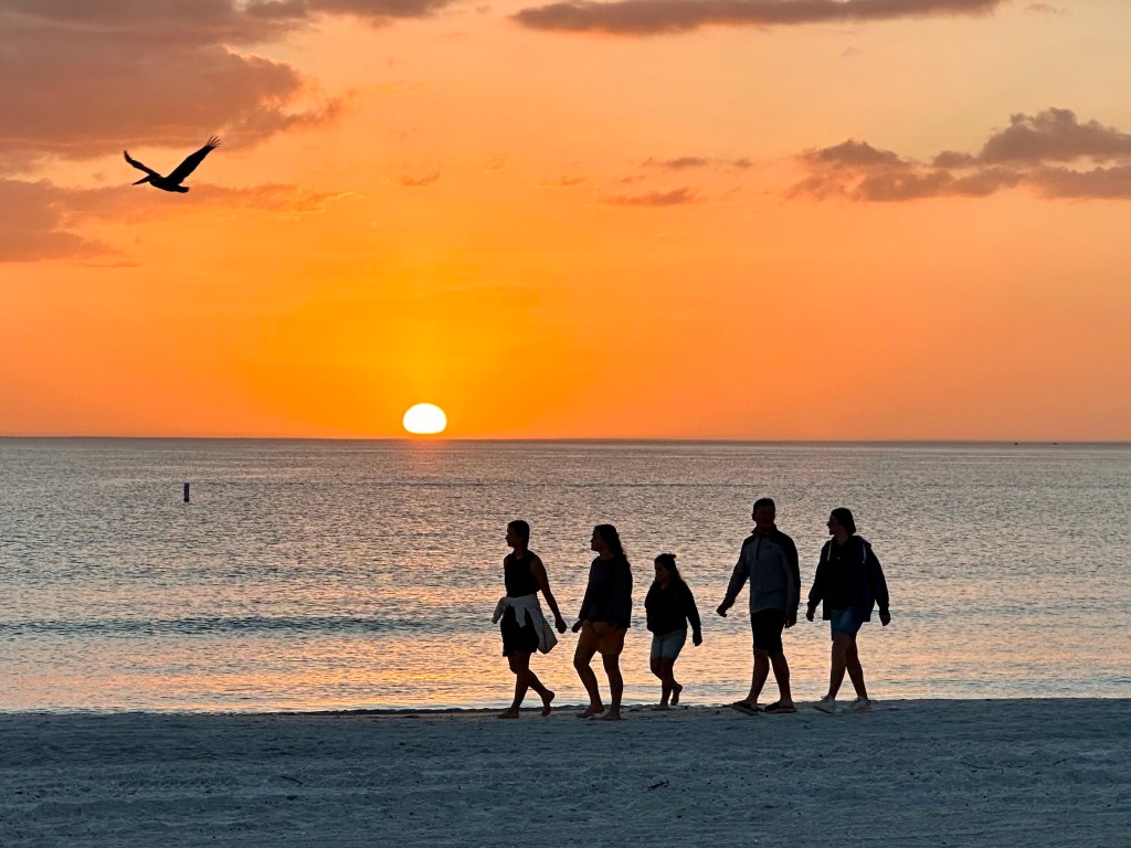 In this photo, a Brown Pelican appears to be leading the way home for this family walking along North Lido Beach. Sometimes the photo paints the picture for you. Plus, it’s only appropriate that we let the sun set on 2025.