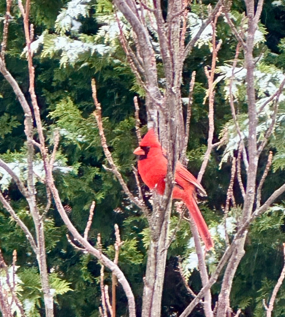 Is there anything more stunning than a bright red male Northern Cardinal in the midst of winter? Against evergreens laden with a skiff of snow, the bird shows even more colorfully. It’s just one of the reasons I love watching, feeding, and photographing birds.