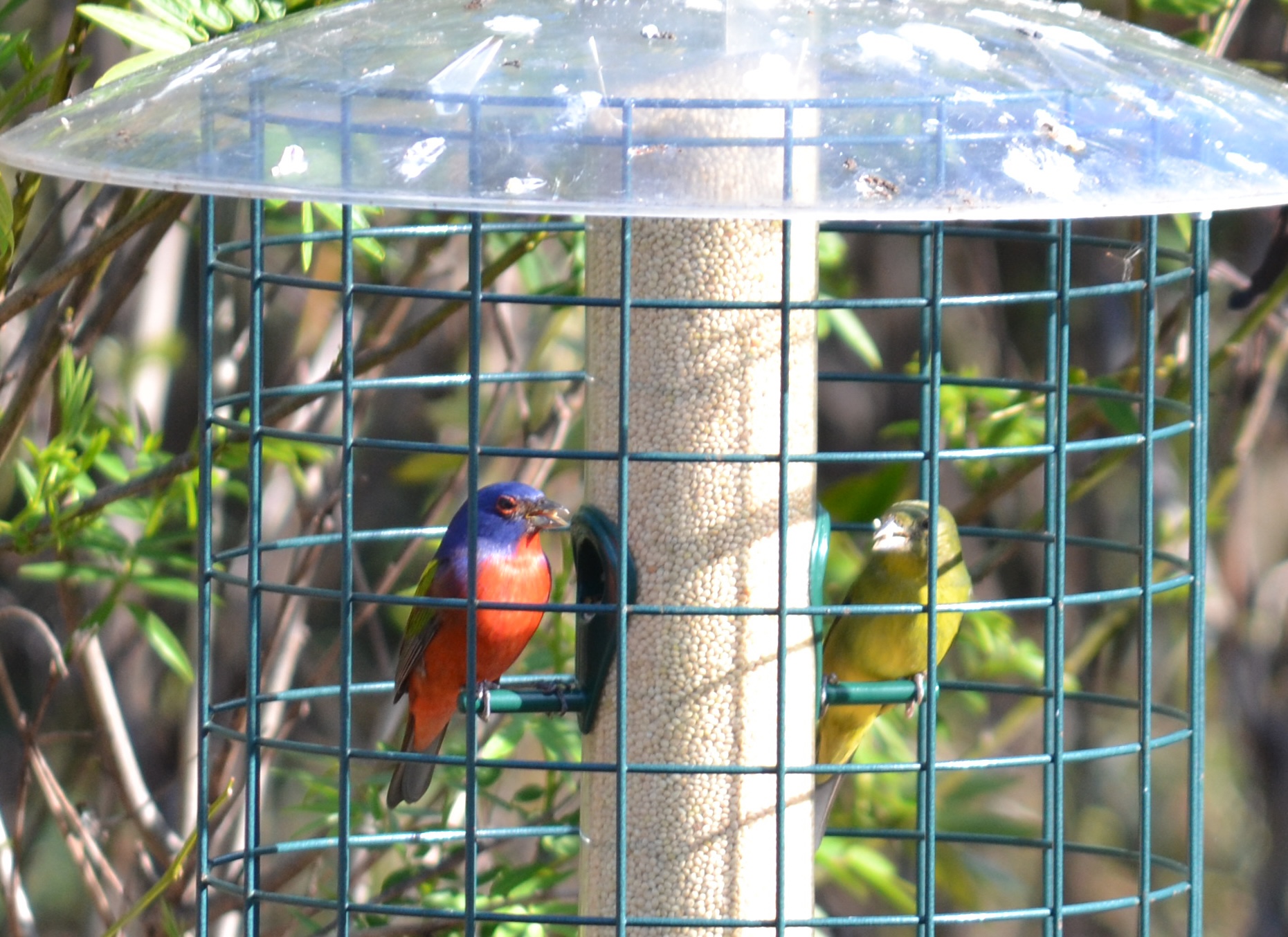 Bird feeders were strategically placed near the center, attracting several species of birds for a closer look. This included a handsome pair of Painted Buntings.