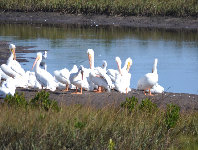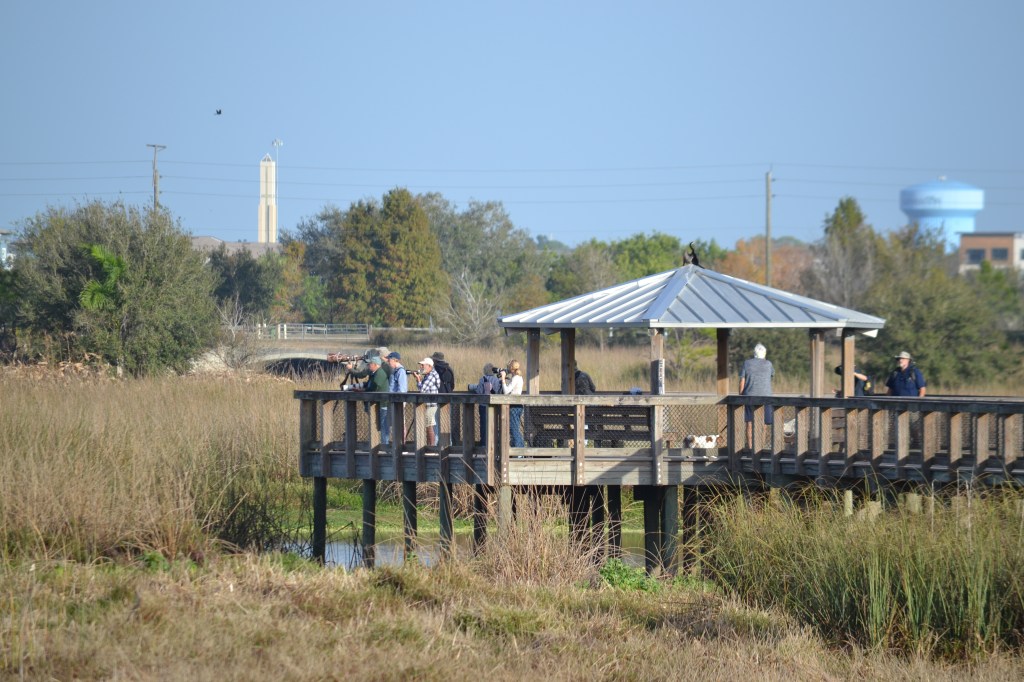 Still, bird species were plentiful, and the people I met were friendly and inquisitive about birds they saw but couldn’t identify. The binoculars dangling around my neck over my birding vest gave me away. It was a pleasure to help them learn about Rosate Spoonbills and Red-shouldered Hawks.