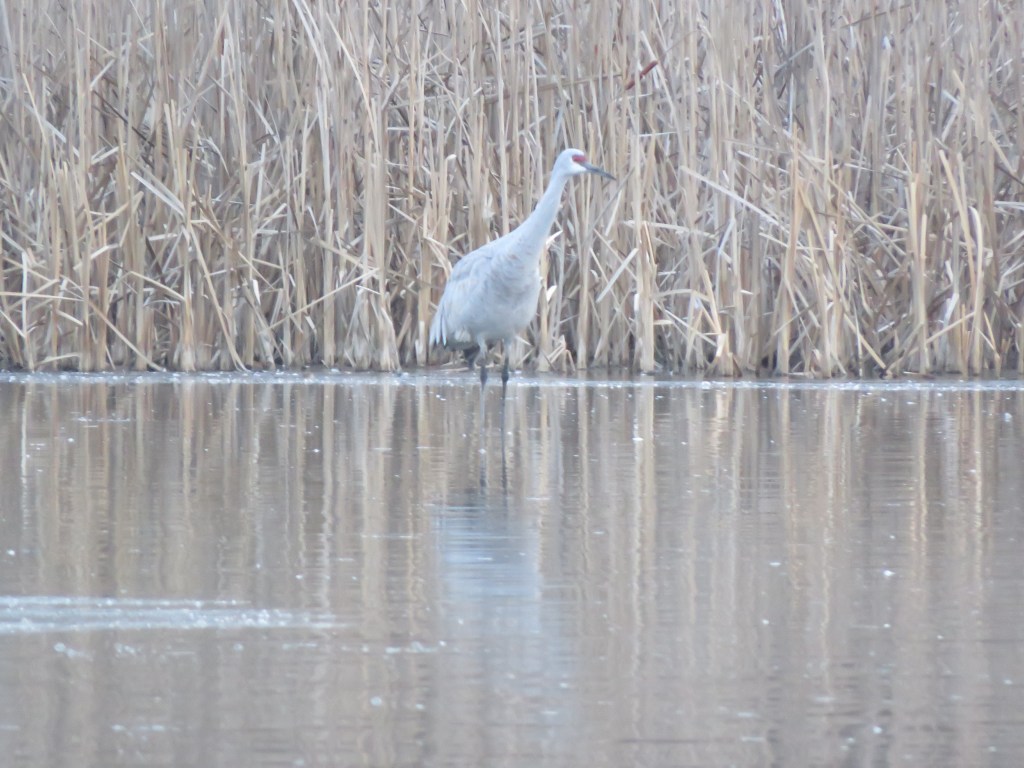After an early morning lab test at the local hospital, I drove a couple of miles to a favorite lake that often affords decent birding. I found the bird I hoped would be there, a lone Sandhill Crane, plus I got a bonus.