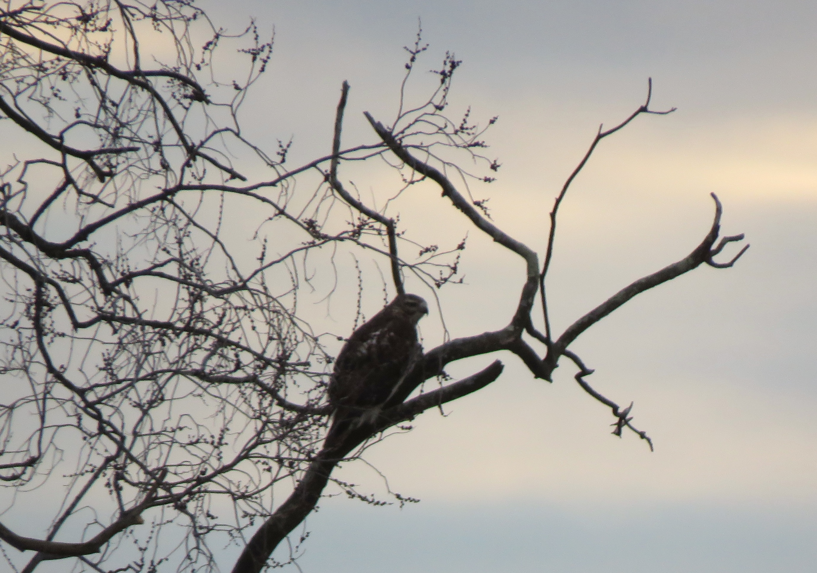 Since the day had been mostly cloudy and dusk was nearly upon us, I merely wanted to check out this popular birding spot. Still, I saw a Northern Harrier coursing over a rolling field heading away from us.