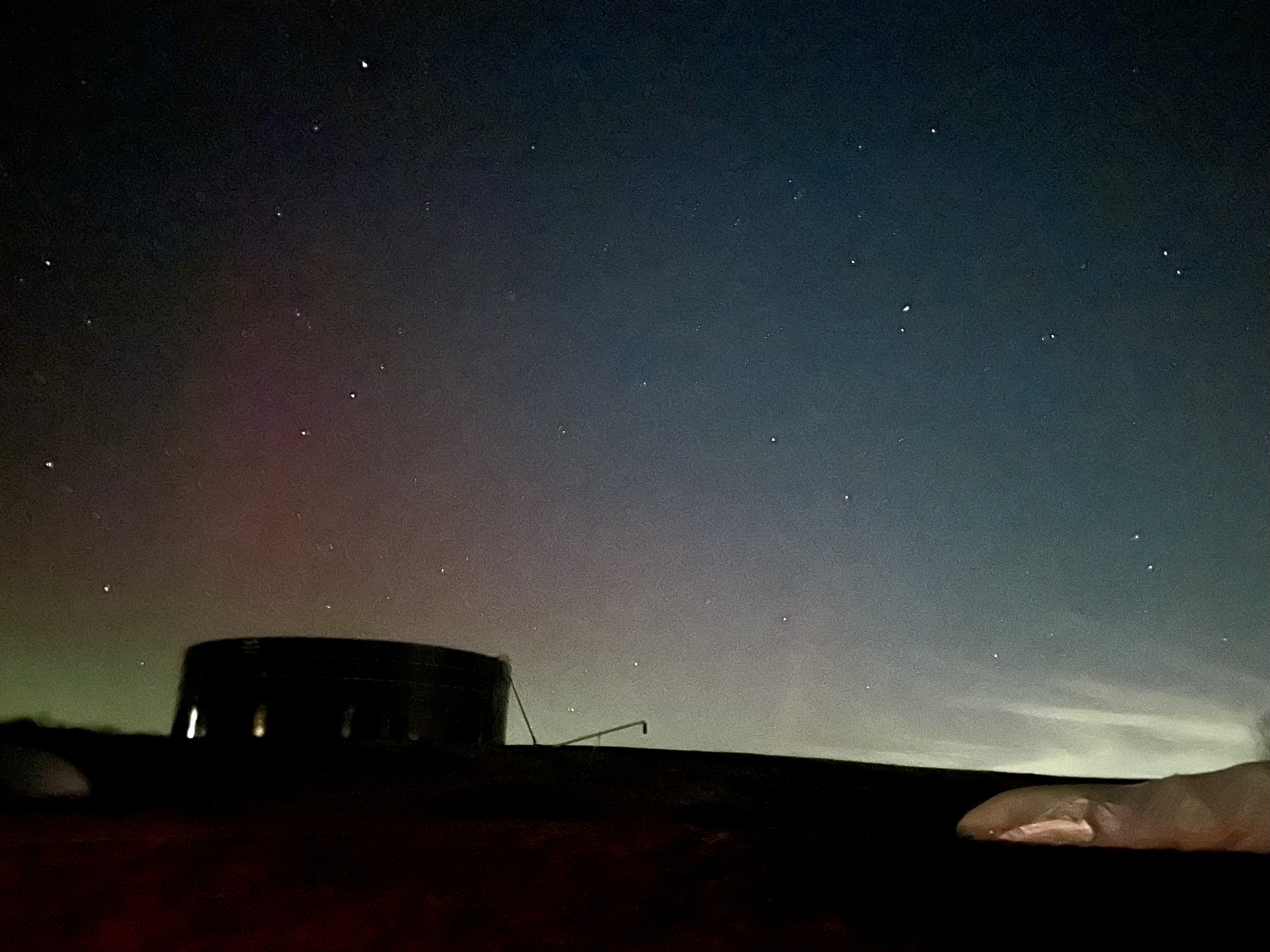 However, my attention shifted when I saw a photo of the aurora borealis posted on Facebook by a friend who lives a few miles away. I walked outside, took a few pictures, and could see a little red in the sky.