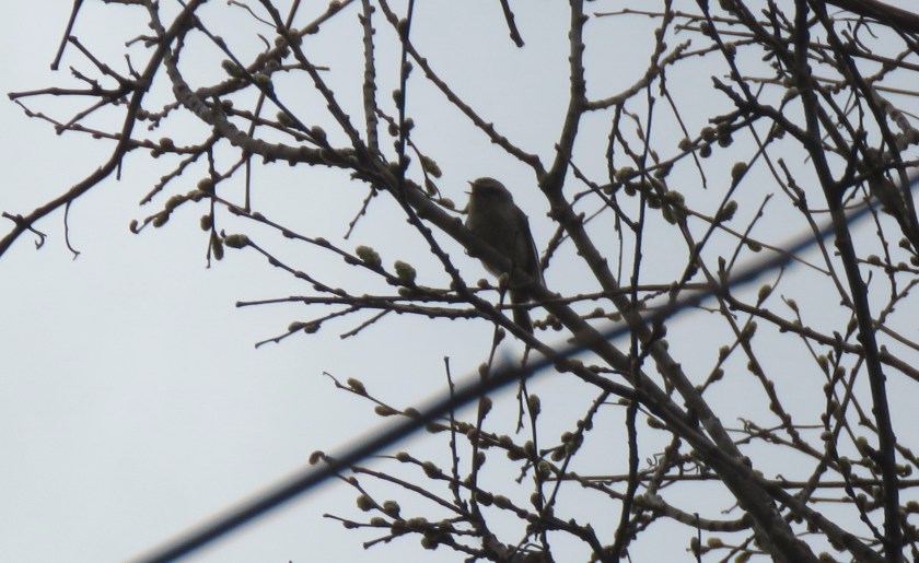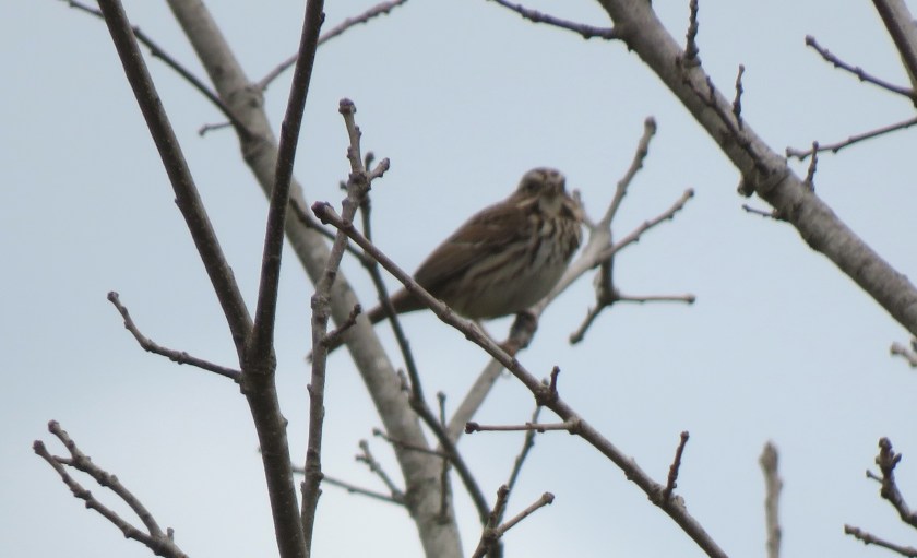 Merlin showed a Pine Warbler calling, but I couldn’t find it. Pine Warblers are often among the first of their species to migrate back north after overwintering in the warmer southern states.