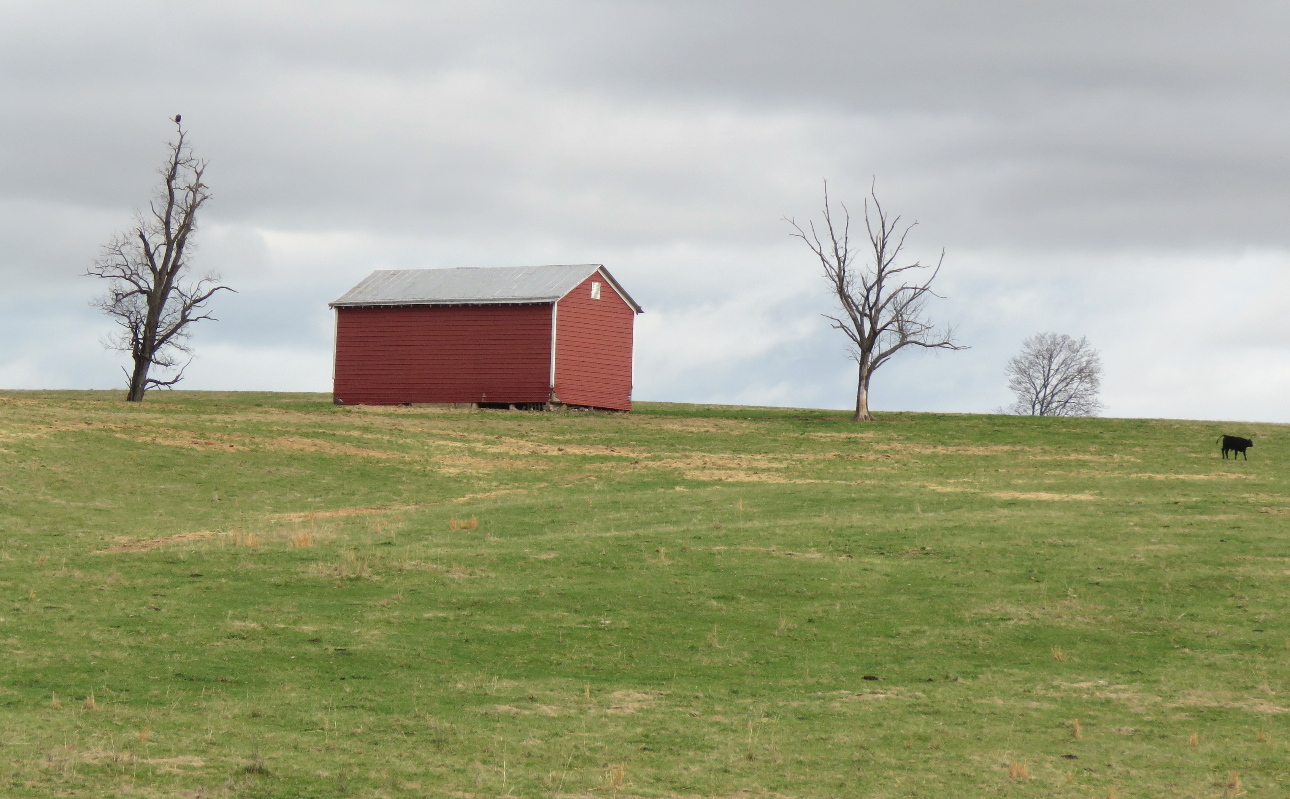 As we reached the halfway point, we were at the summit of the ridge. A line of black Angus steers lumbered away from a small red barn down the pasture toward the road.