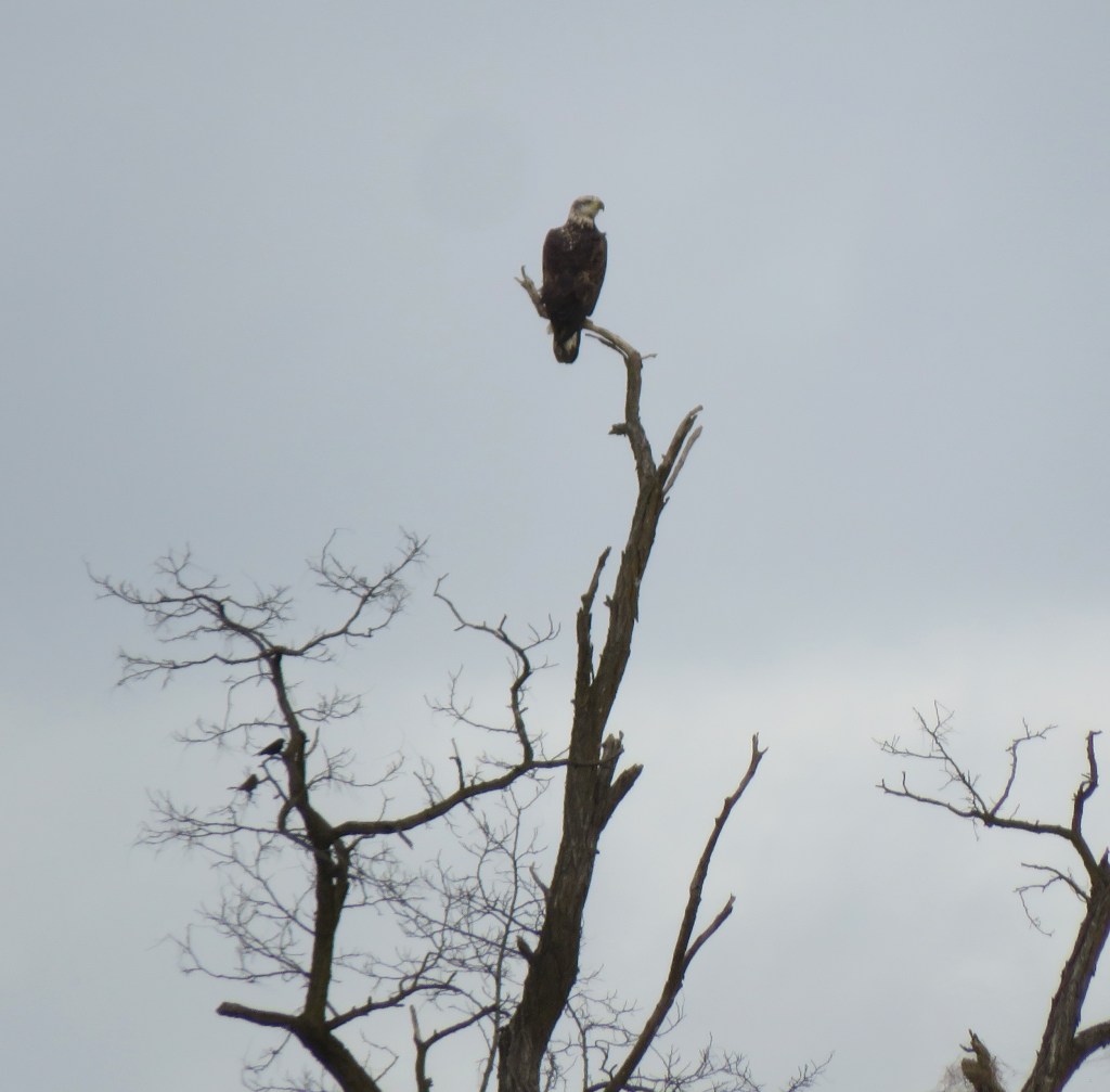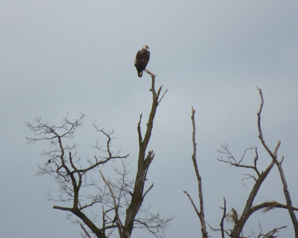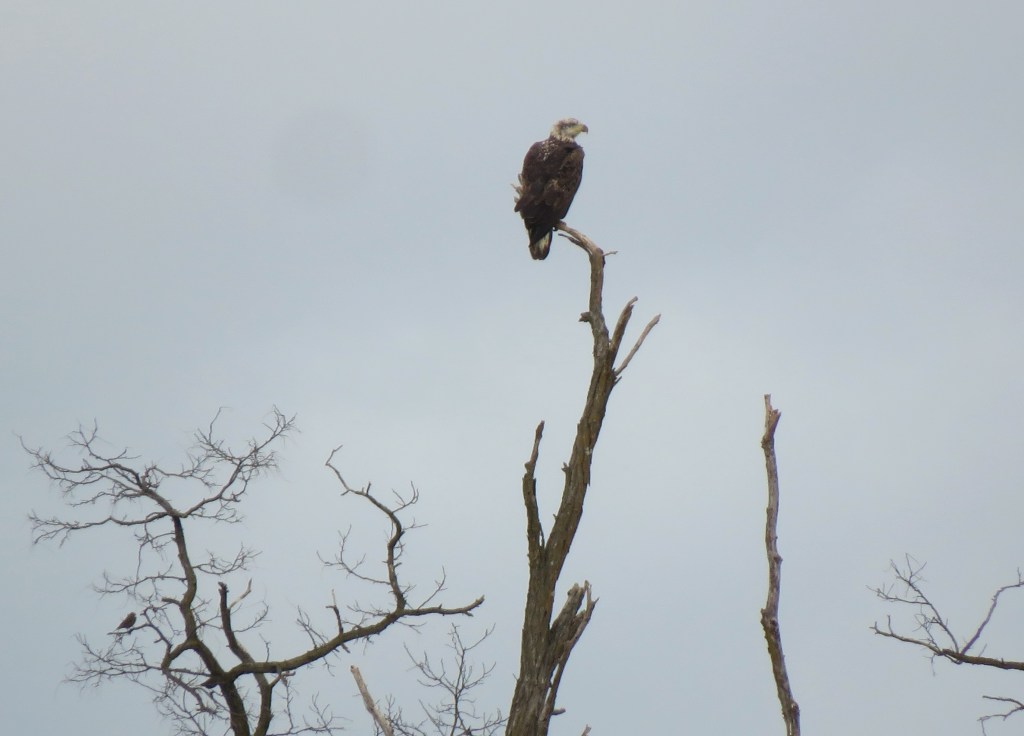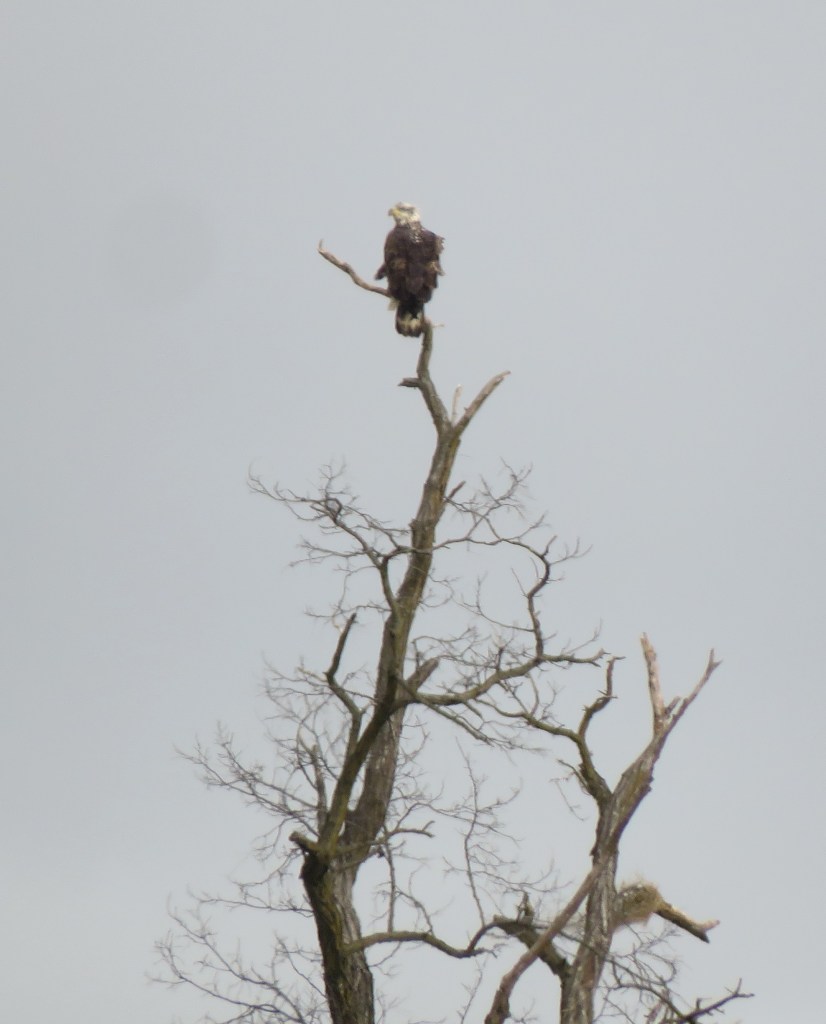 We headed back into town for lunch, having heard and or seen 43 bird species in a little over two hours. I anticipated warblers, but saw an eagle instead. It was an unexpected gift on our anniversary morning.