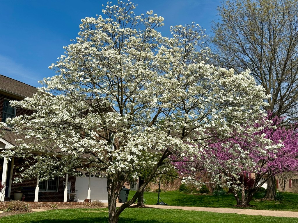 Of all the signs of spring, a blooming dogwood is my favorite. Their crown of beautiful white blossoms is simply stunning, especially in full sunlight. It’s a hallmark of spring for me.