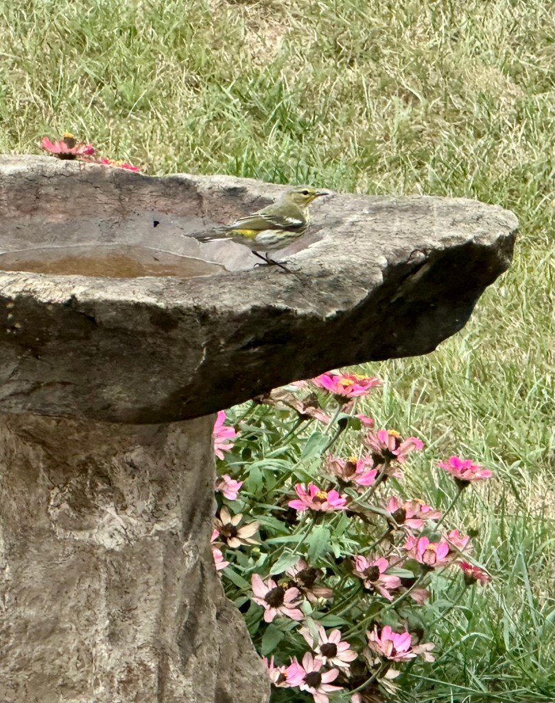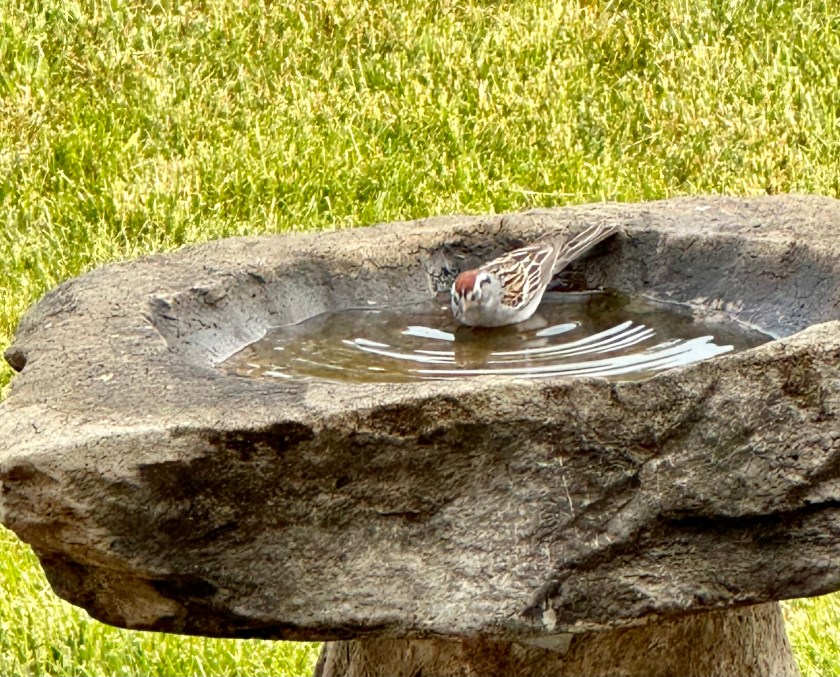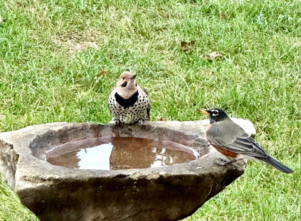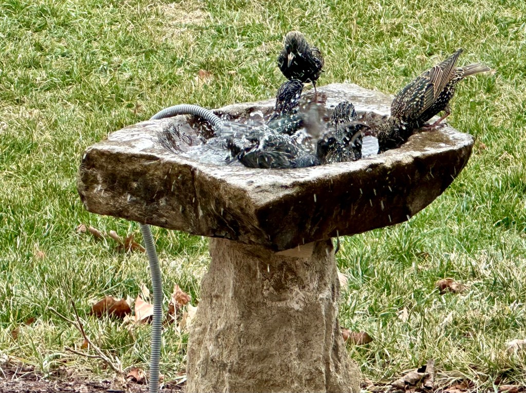 Birds tend to keep their nests neat. They carry fecal sacks containing their babies’ unwanted excrement. Unfortunately, Common Grackles are known to drop those gross sacks in the birdbaths. So, ensuring the birdbaths are clean and filled with fresh water is critical for keeping birds healthy.
