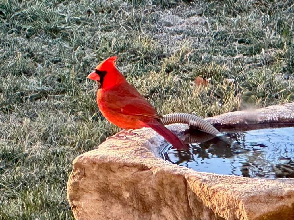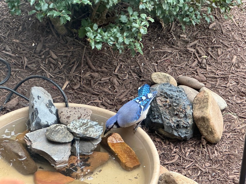 Different species have particular ways of drinking. Blue Jays gulp their water by tipping back their head and chugging it down. Mourning Doves are the opposite. They only dip the end of their beaks into the water and daintily sip until satisfied. Northern Cardinals take their time, seemingly enjoying their refreshing liquid.