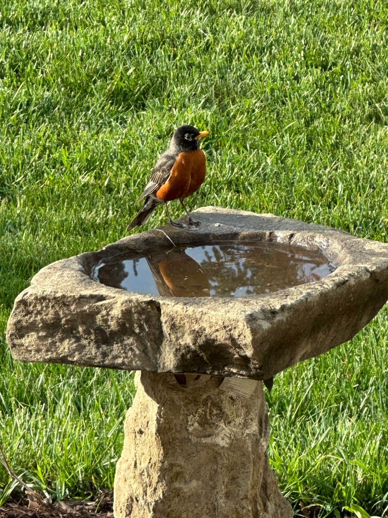 Birds even use water to clean their beaks of residue, such as seed shells. American Robins bring nesting material to dampen it, making the straw or dried grass more pliable. But it is critical to keep the water and the birdbath basins filled and clean.
