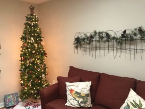 I enjoyed hanging an assortment of ornaments that represent nearly every year of our togetherness. Neva completed the adorning with thin, red-striped candy canes, also an annual tradition.