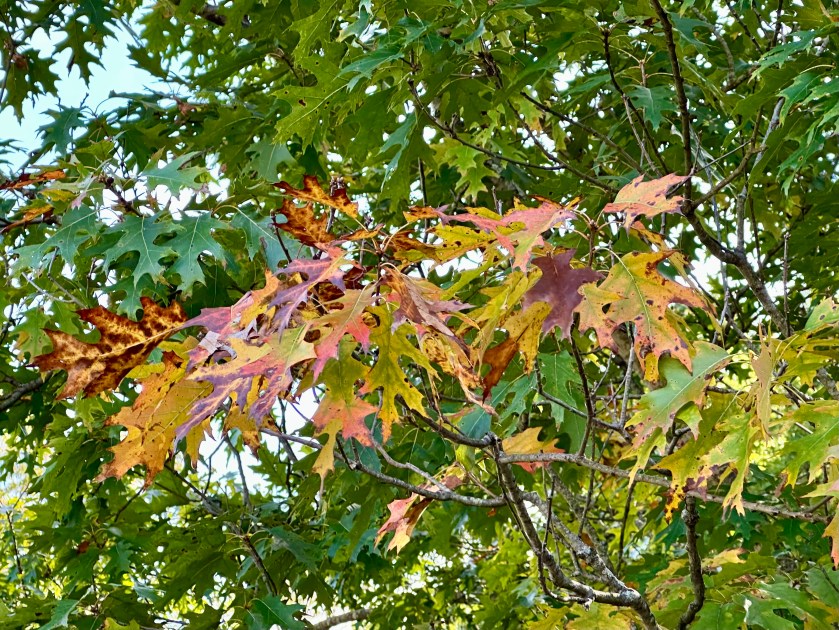 At the top of the ridge, some of the birders broke off to return home or head to their workplace. The rest of us walked on, admiring the varying landscape, vegetation, and mix of deciduous and evergreen trees.