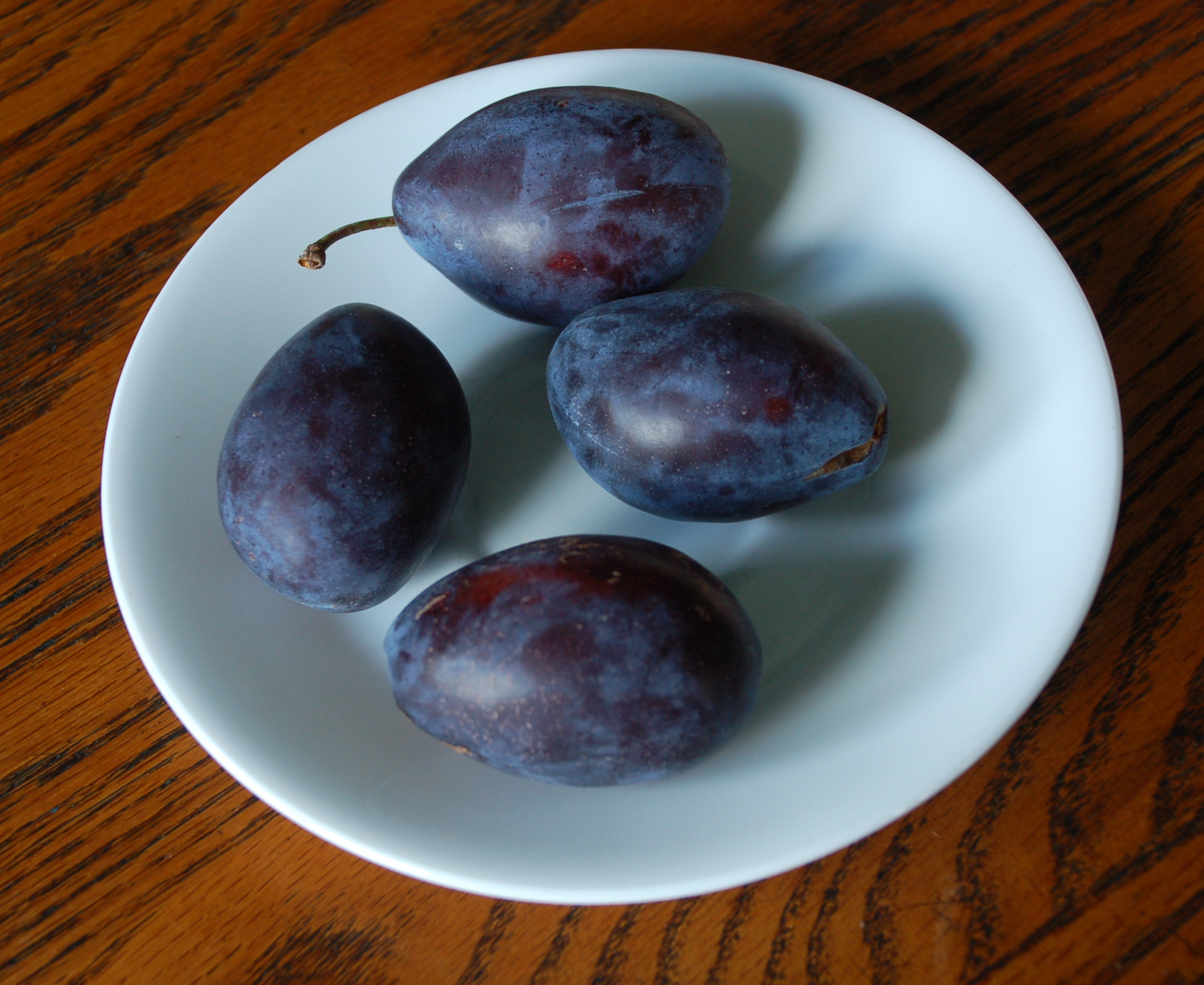 I loved everything about them, their simple size, their football shape, their blue violet sheen, their light greenish-yellow flesh, their sweet tart taste, and even the pit.