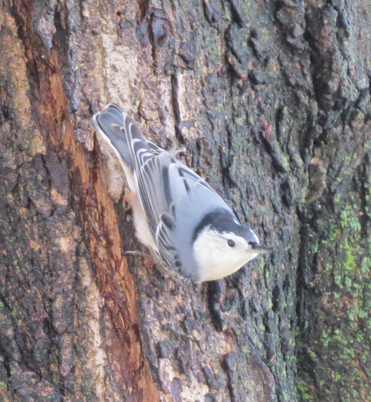 Commerce bustled. White-breasted Nuthatches scurried headfirst down a sugar maple’s crackled trunk, hopped to the feeder, and back to the tree satisfied. Blue Jay acorn wars ensued with flashes of blue and clarion victory calls amplified by the dampness.