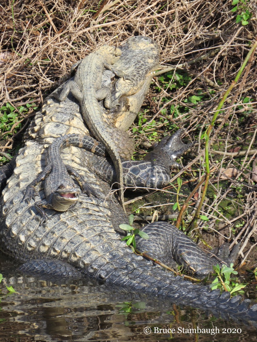 Looks can be deceiving. This second-year alligator appears to be warding off any potential threats to its mother and siblings. In reality, momma and her crew were merely warming themselves in the the afternoon sunshine in Egans Creek Greenway, Fernandina Beach, Florida.