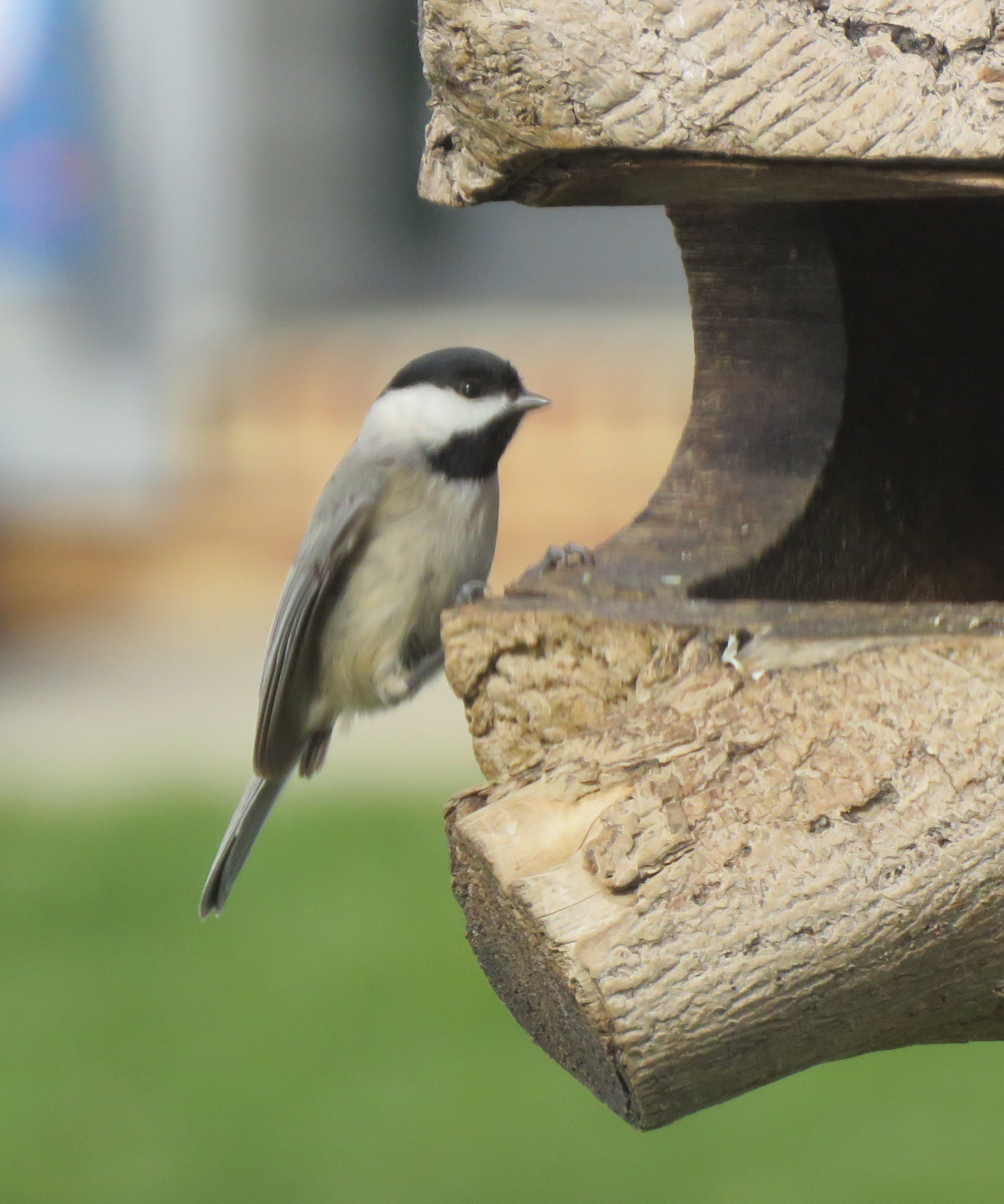 Since the feeder is midway between our home and the street, the birds that visit the feeder are often cautious. People walking dogs, runners, and passing vehicles frighten the birds.