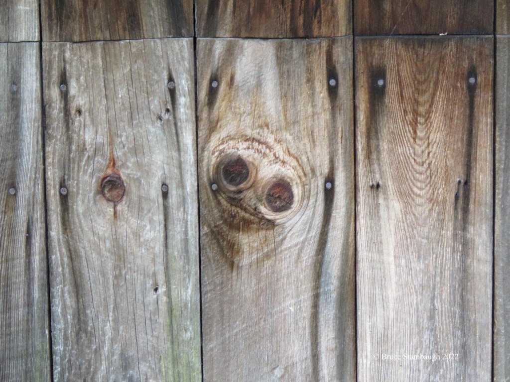 While visiting the Marbry Mill on the Blue Ridge Parkway near Meadows of Dan, Virginia, I spotted this creature staring back at me. The knotty apparition in the weathered barn wood sure resembled the face of a real Barn Owl.