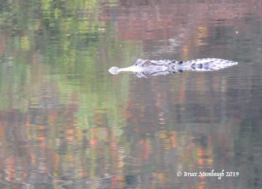 As you might imagine for any marshland, reptiles thrive as well. On warm January days, I search for sunbathing alligators. Families of turtles and discreet but playful river otters also are fun to watch if you are fortunate to find them. I seldom see snakes.