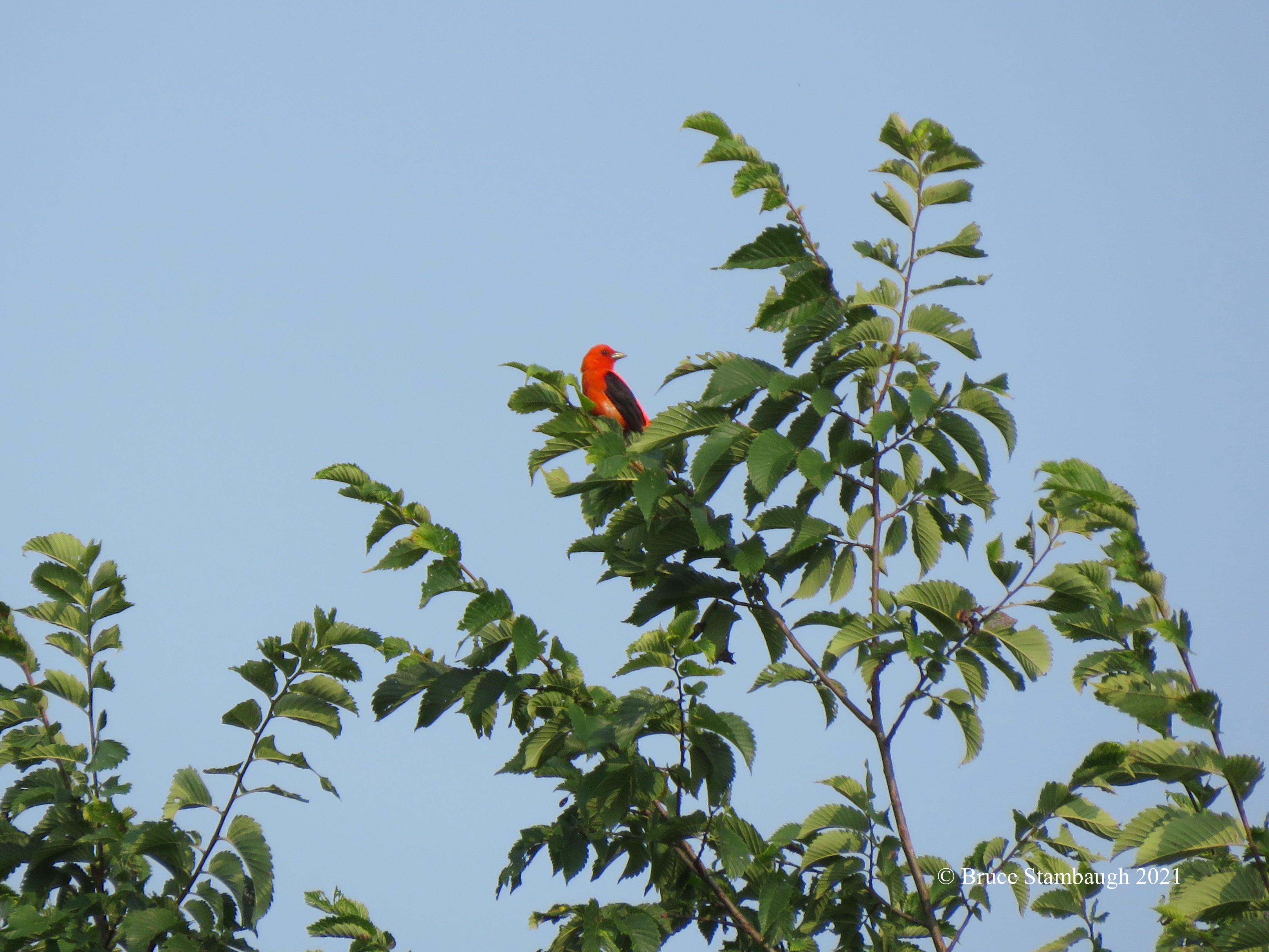 Upon hearing the description, the property owner was ecstatic. “I’ve been hoping the scarlet tanager would return,” he said with glee.