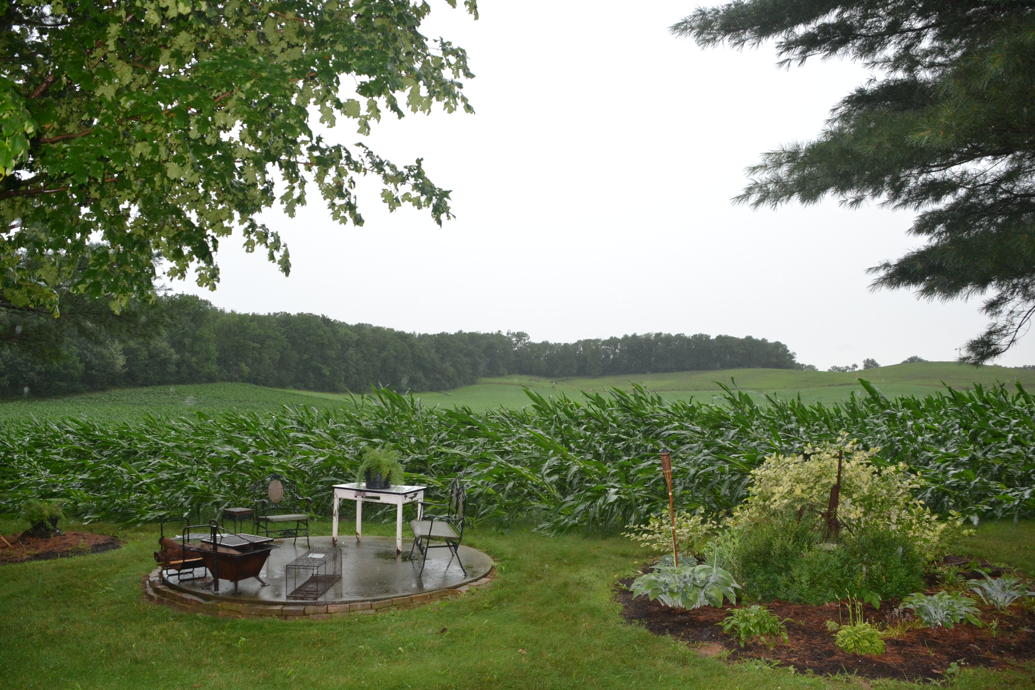 Winds from the severe storm swirled eight-foot high corn nearly to the ground.