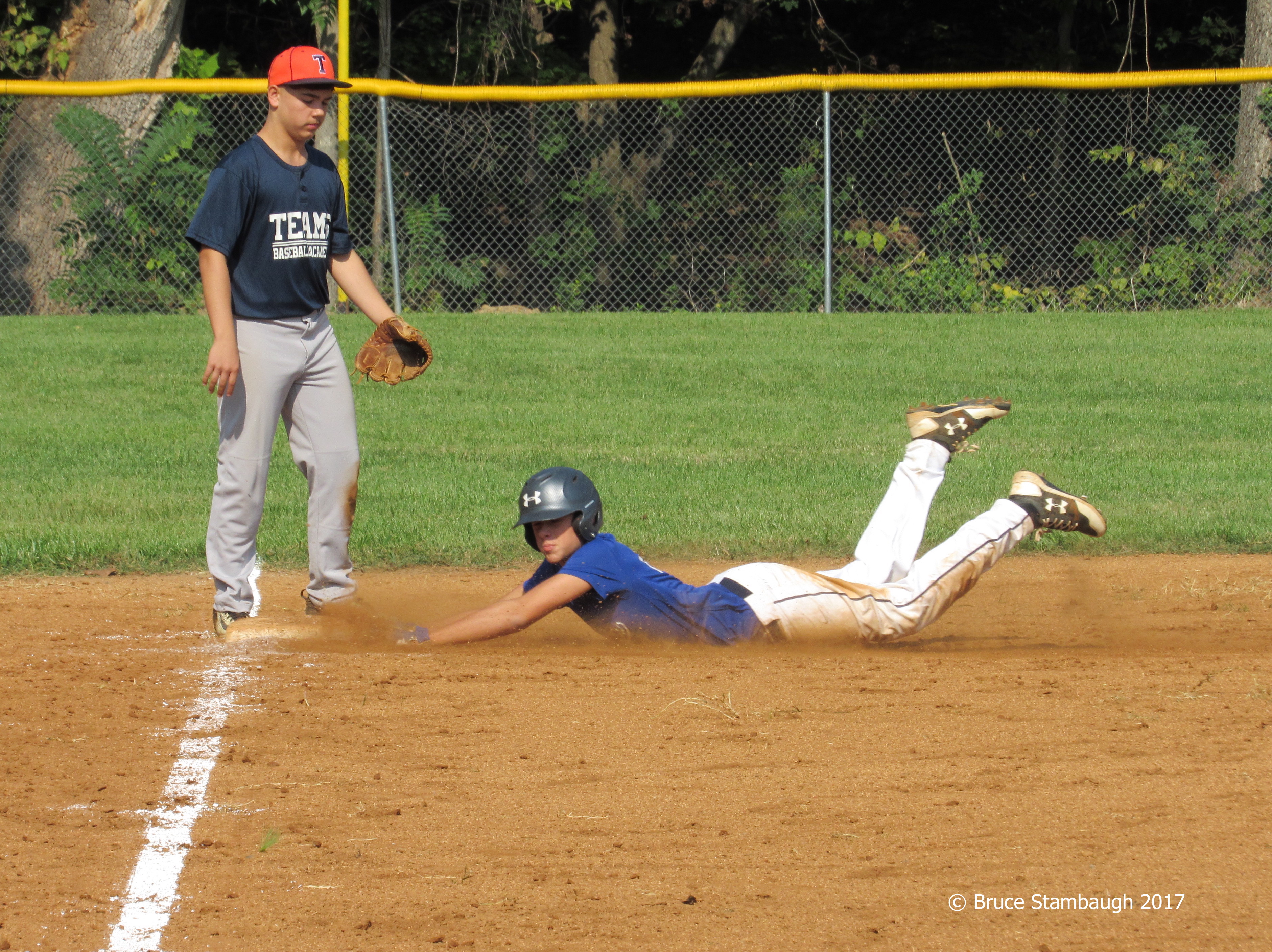 Of course, I always take my camera along. I was particularly pleased to capture this shot of Evan’s diving catch to save both a hit and a run from scoring. You should have seen his uniform after he made the play.