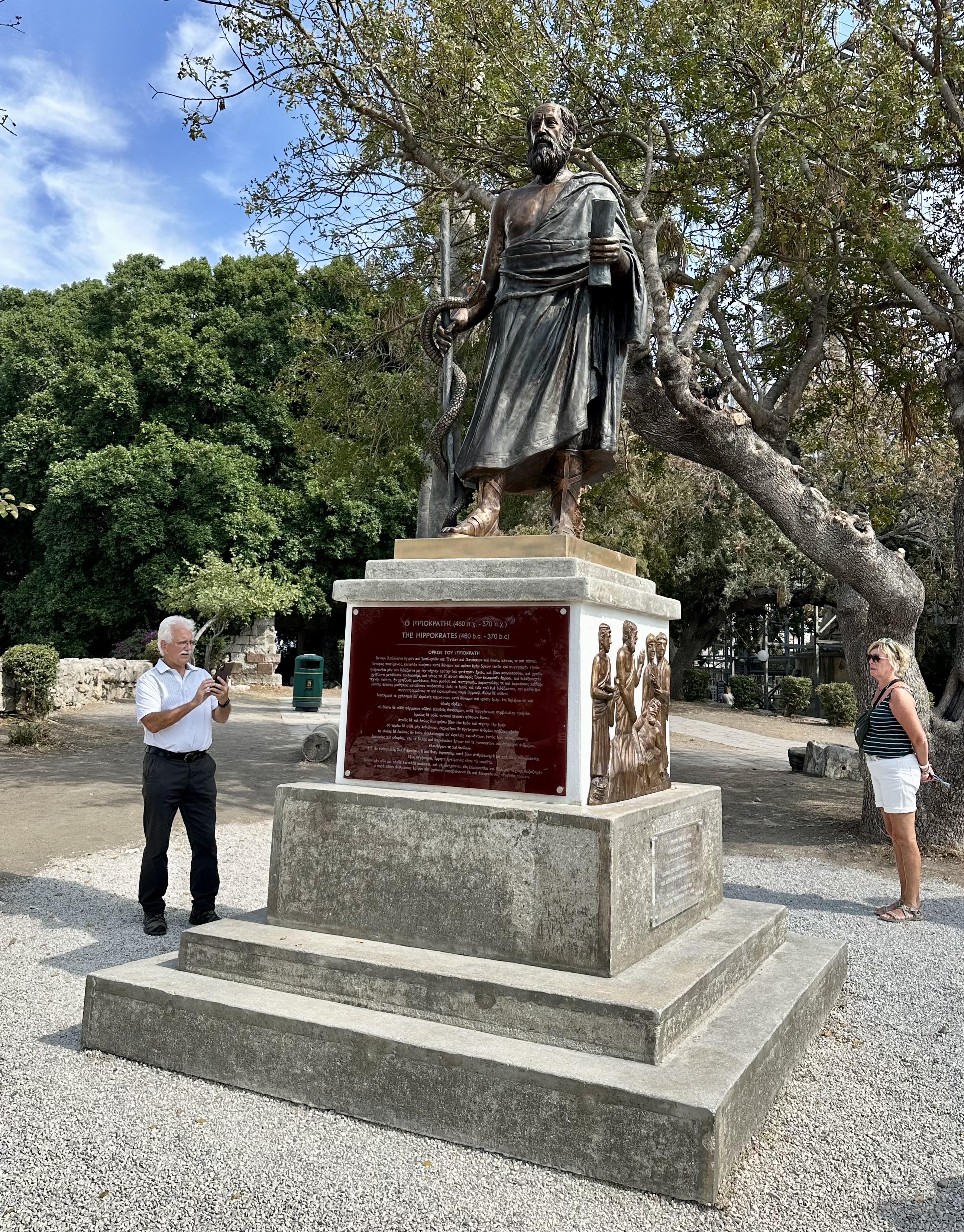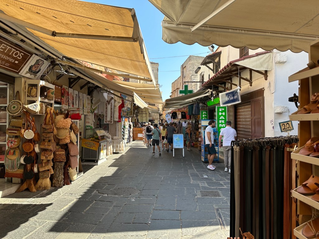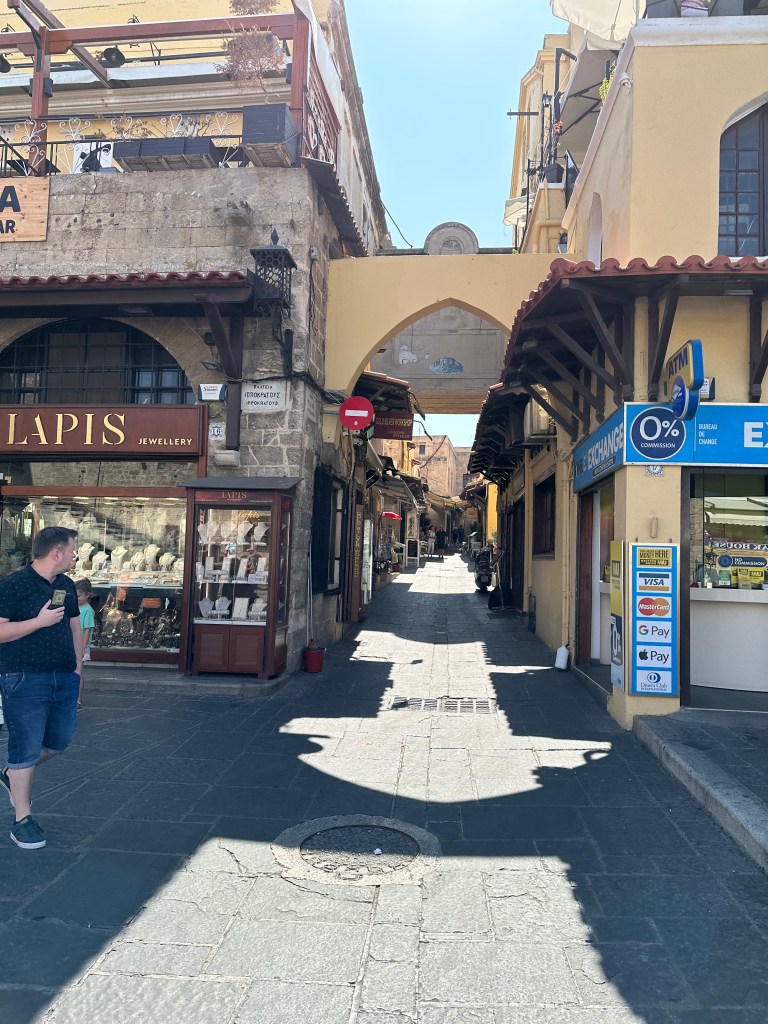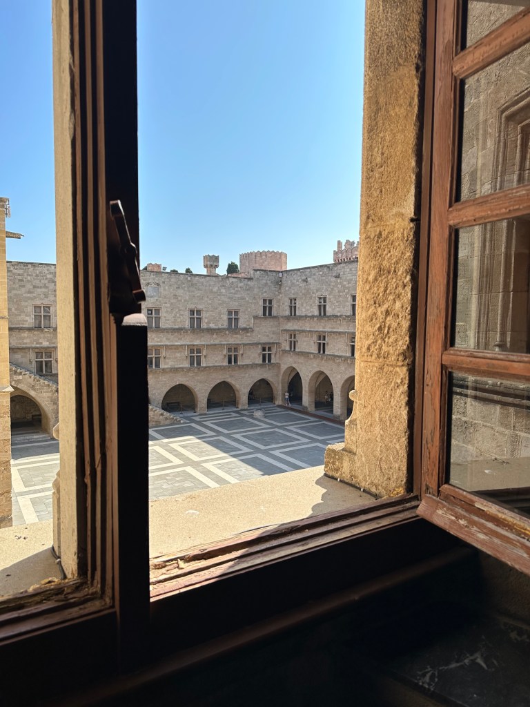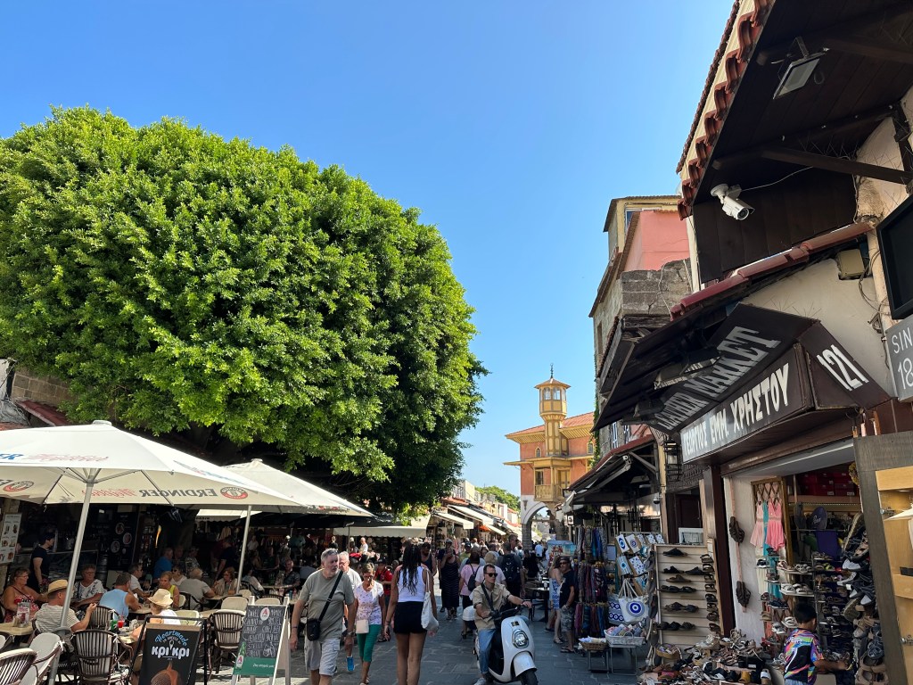 We marched up the steep incline of the Avenue of the Knights, with its pebbled cobblestones, to the Palace of the Grand Master. The Old Town owes its present-day appearance mainly to the Knights of St. John from the 14th and 15th centuries AD. The Knights closely followed the city’s Hippodamean grid plan, and sometimes, some streets follow the exact route of the 5th century BC streets. The main street today, Sokratous Street, was also the main commercial street in the Hellenistic period.