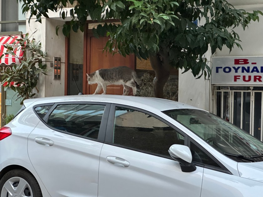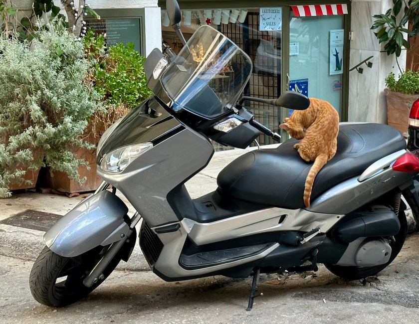 We also had to watch when we exited our little villa. After opening the protective iron gate, we entered a busy, narrow street. We squeezed against the stone walls as motorbikes and cars whizzed by. I was intrigued with where and how the vehicles were parked in a town built long before motor-driven transportation. The answer was they parked where they could and sometimes where they shouldn’t.