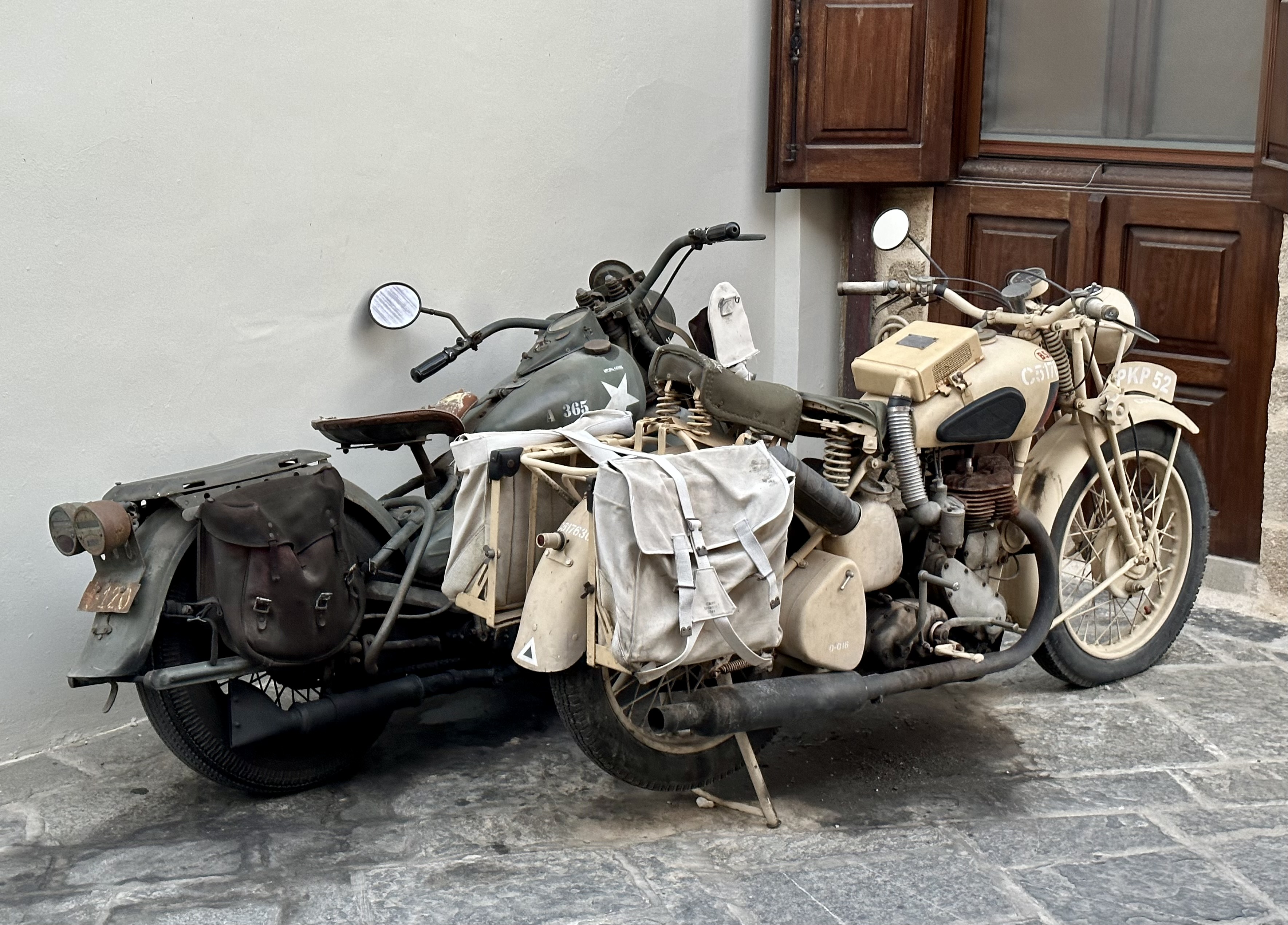 We also had to watch when we exited our little villa. After opening the protective iron gate, we entered a busy, narrow street. We squeezed against the stone walls as motorbikes and cars whizzed by. I was intrigued with where and how the vehicles were parked in a town built long before motor-driven transportation. The answer was they parked where they could and sometimes where they shouldn’t.