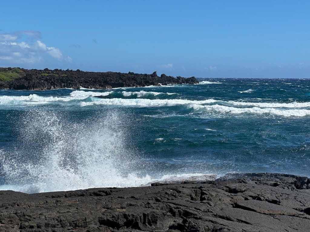Ancient and recent lava flowed to the sea down the mountainsides, disrupting most plant growth. Still, grasses poked through, helping to break down the rock with assistance from winds and rain.