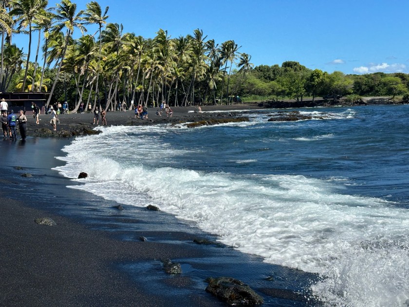 Lush foliage covered steep, sharp mountains while a half mile to the coast, shorebirds waded for any morsel they could snag. That’s the natural consequence of life on the tip of a submerged volcano that would tower over all land-based mountains, including Mount Everest. Animals and birds flourished all around Hawaii Volcanos National Park.