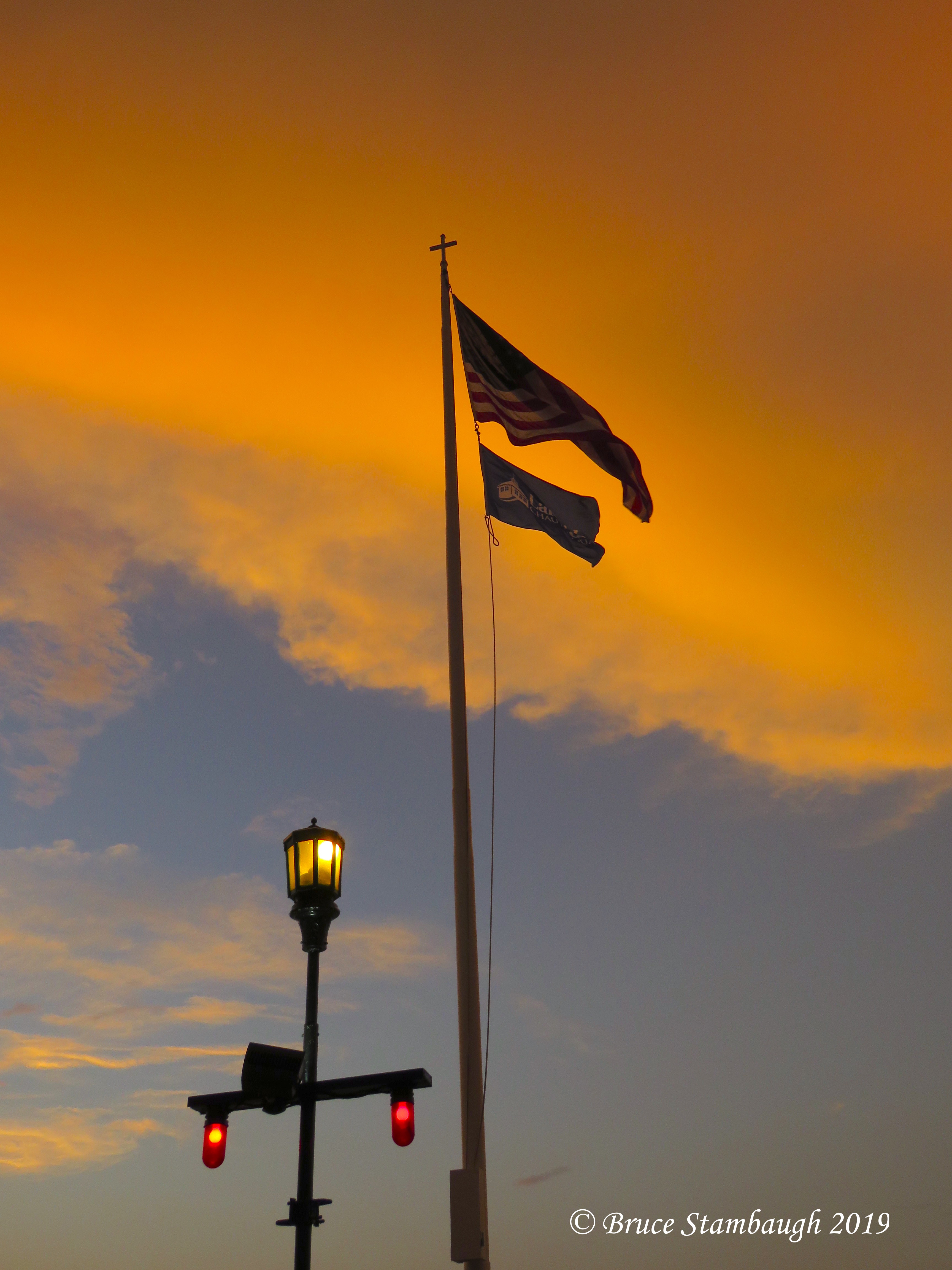 Two blocks from the shore, the sky looked promising for another spectacular sunset. When I reached the dock, however, I noted the thick cloud bank to the west. Given past experiences at Lakeside, the Chautauqua on Lake Erie, I hung around.