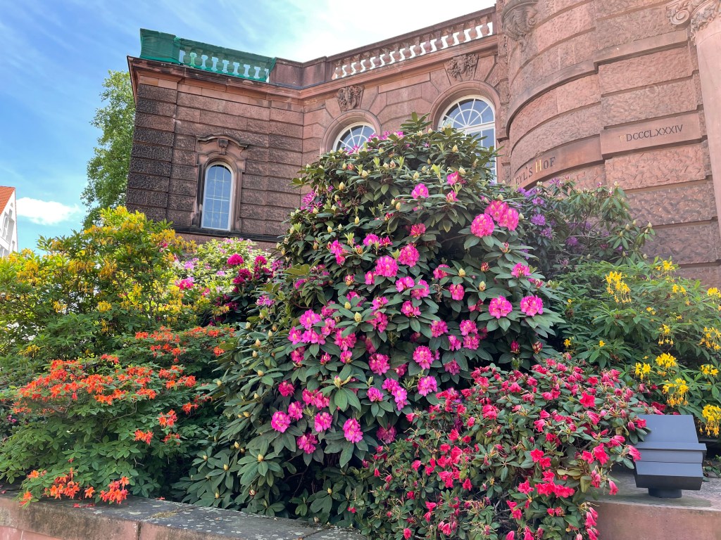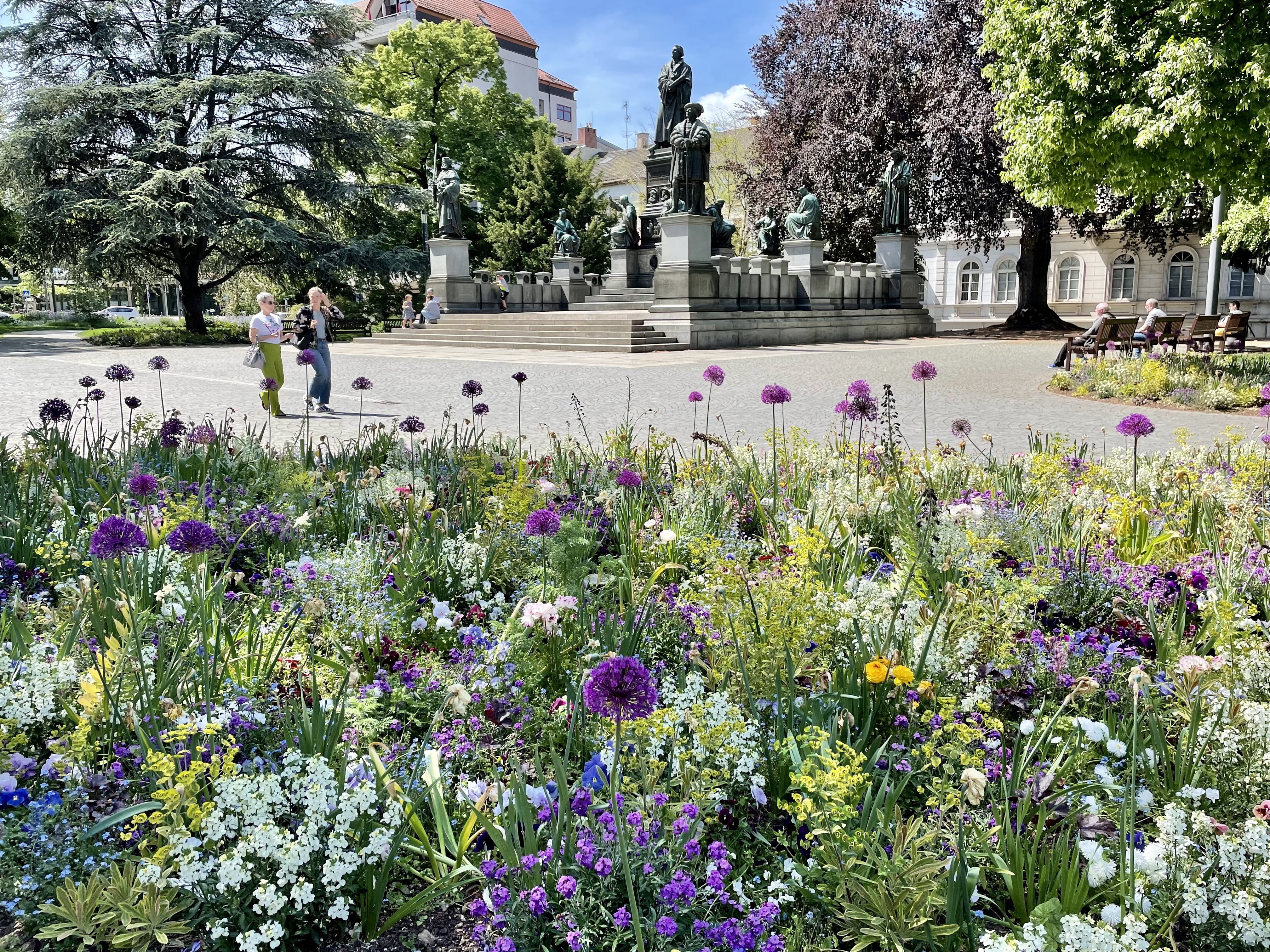 Our lunch stop in Worms, Germany, included touring significant sites where Martin Luther began his public resistance that eventually led to the beginning of the Reformation. Flowers and flowering shrubs were in full bloom. We visited the spot where Luther made a dramatic speech and the Reformation Monument at Luther Plaza. A plaque included the complete statement by Luther.