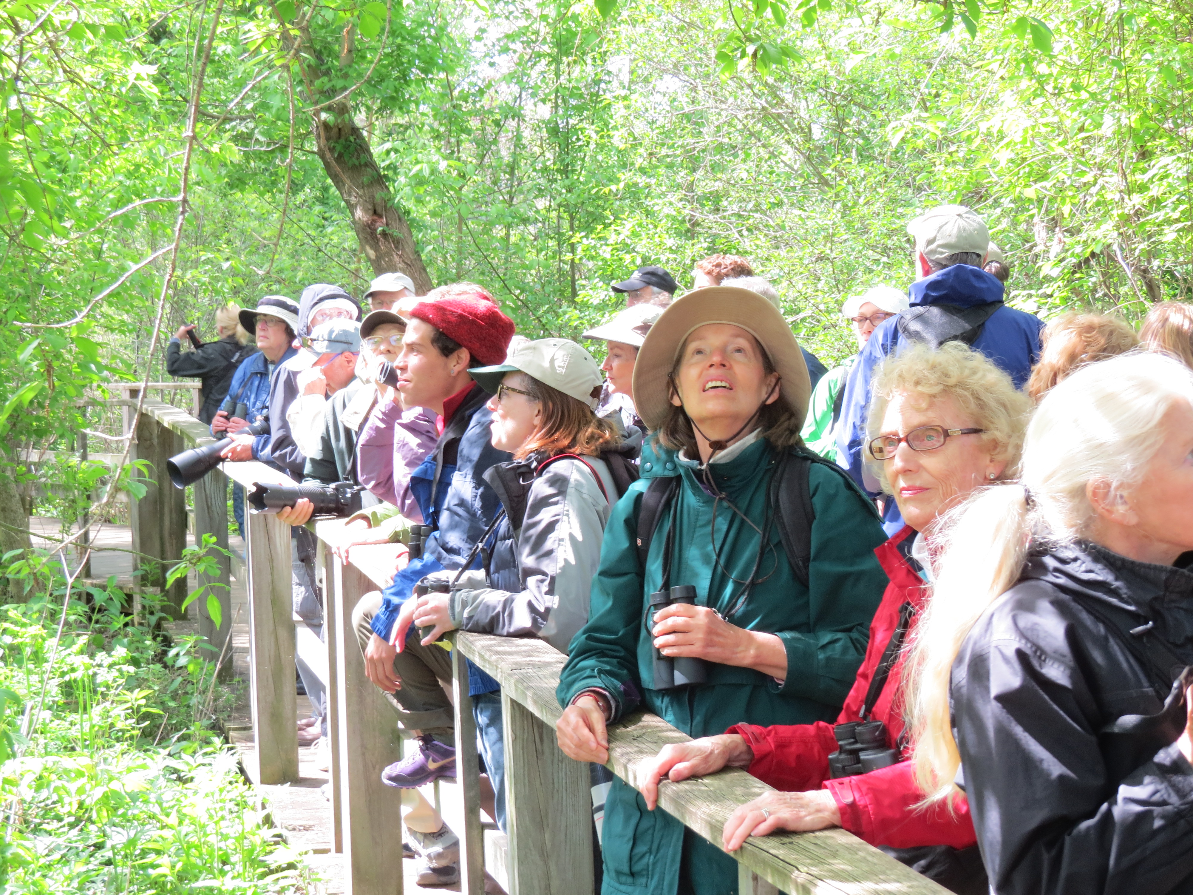 Birders checked out warbler on the boardwalk at Magee Marsh
