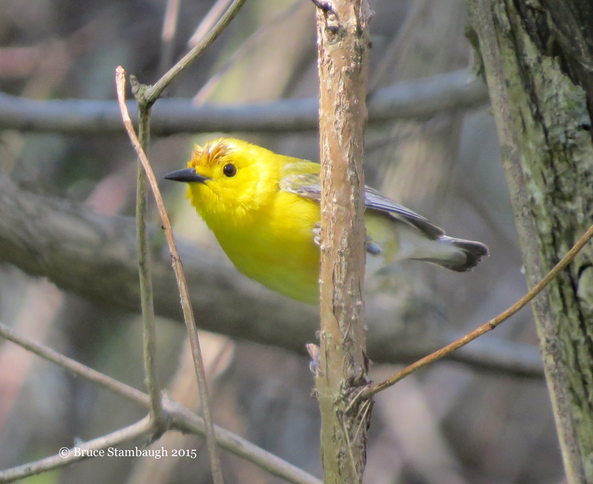 So, I decided to look back in my photo files for a bird that I had never shared before. This Prothonotary Warbler caught my attention and sent me back to when and where I had photographed it. It was a cool, damp day at Magee Marsh Wildlife Area along Lake Erie’s shore in northwest Ohio. The boardwalk was crowded with other birders of all ages from around the world. The cameras clicked away when this bright yellow fellow appeared. Unfortunately, Magee Marsh is closed this year due to the Covid-19 pandemic.