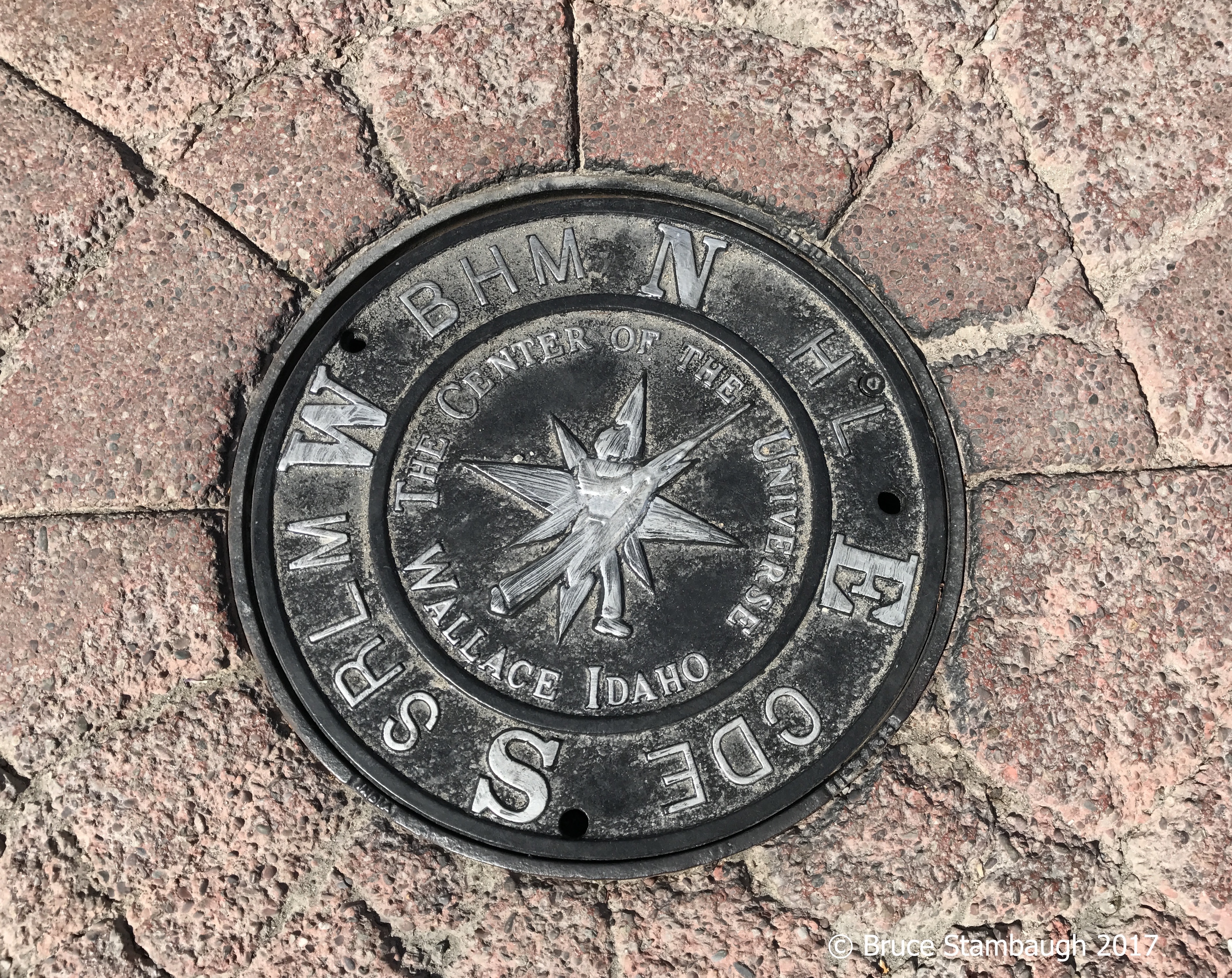 Pushed on an environmental issue by the EPA in 2004, the mayor was told, “If a thing cannot be disproven, it is thereby proven.” The incredulous but affable mayor called the government’s bluff. He proclaimed his beloved Wallace the Center of the Universe because his claim could not be disproven, he said. His proclamation gained international attention. Wise town leaders seized on the idea and installed a fancy manhole cover that doubles as a marker in the middle of the main intersection declaring Wallace as the center of the universe. Blue and white tourist signs mark the spot.