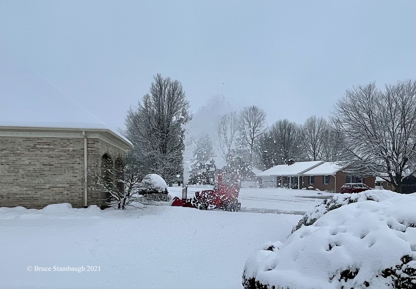 Frank had already cleaned his driveway and that of another neighbor before doing ours. When he finished at our place, he went to Janice’s across the street.