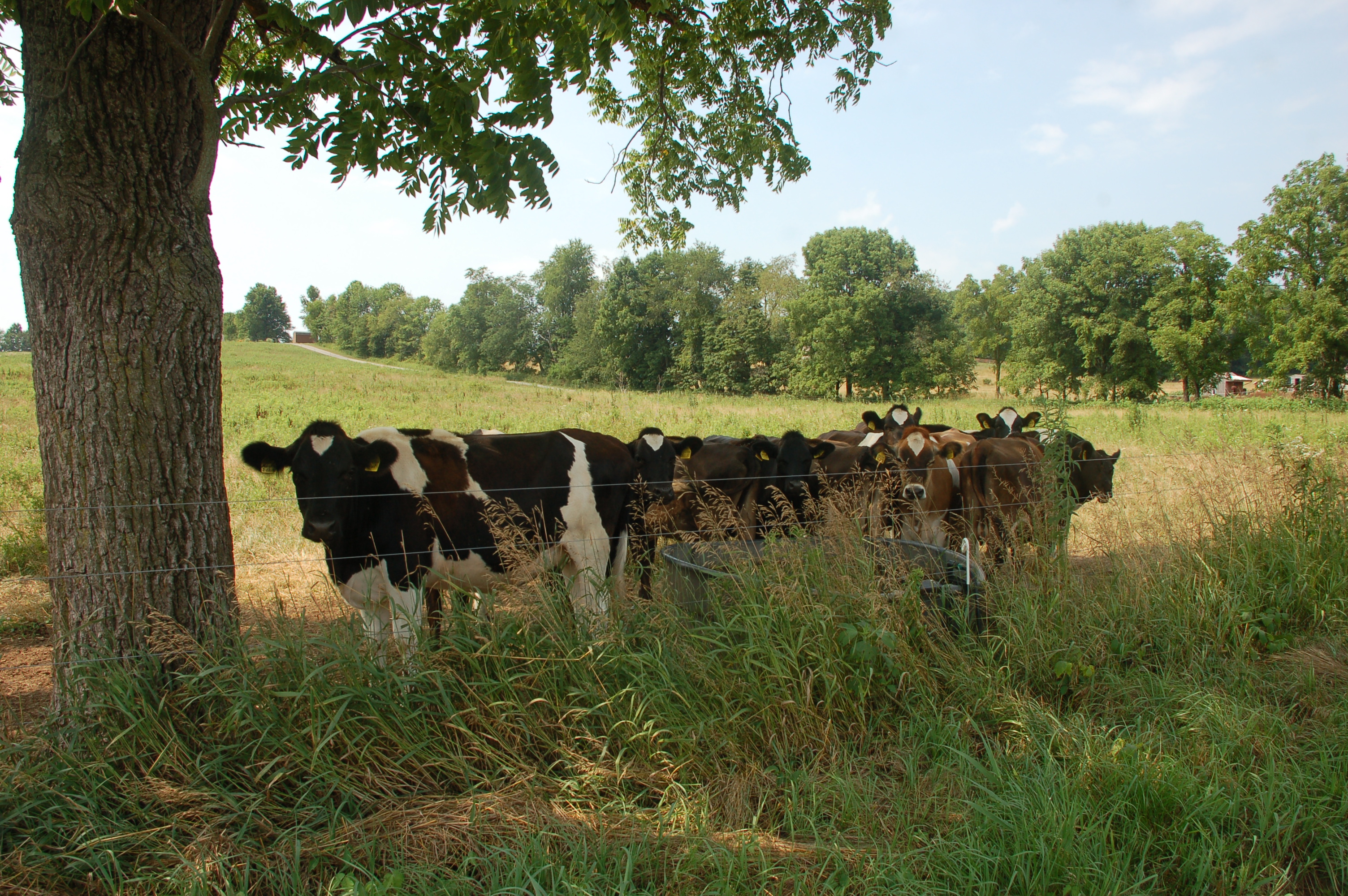 Once the road flattens out, a congregation of Holstein heifers crowded head to tail beneath a black walnut tree suspiciously eye me. As I stroll, their heads turn as one, ears twitching, tails swatting pesky flies. Sensing a potentially easier prey, a few of the flies follow me.